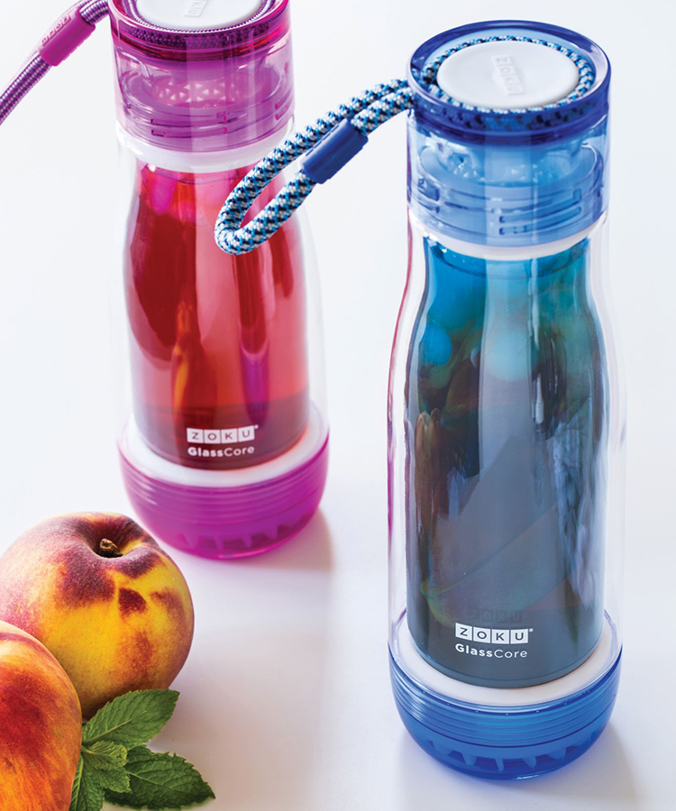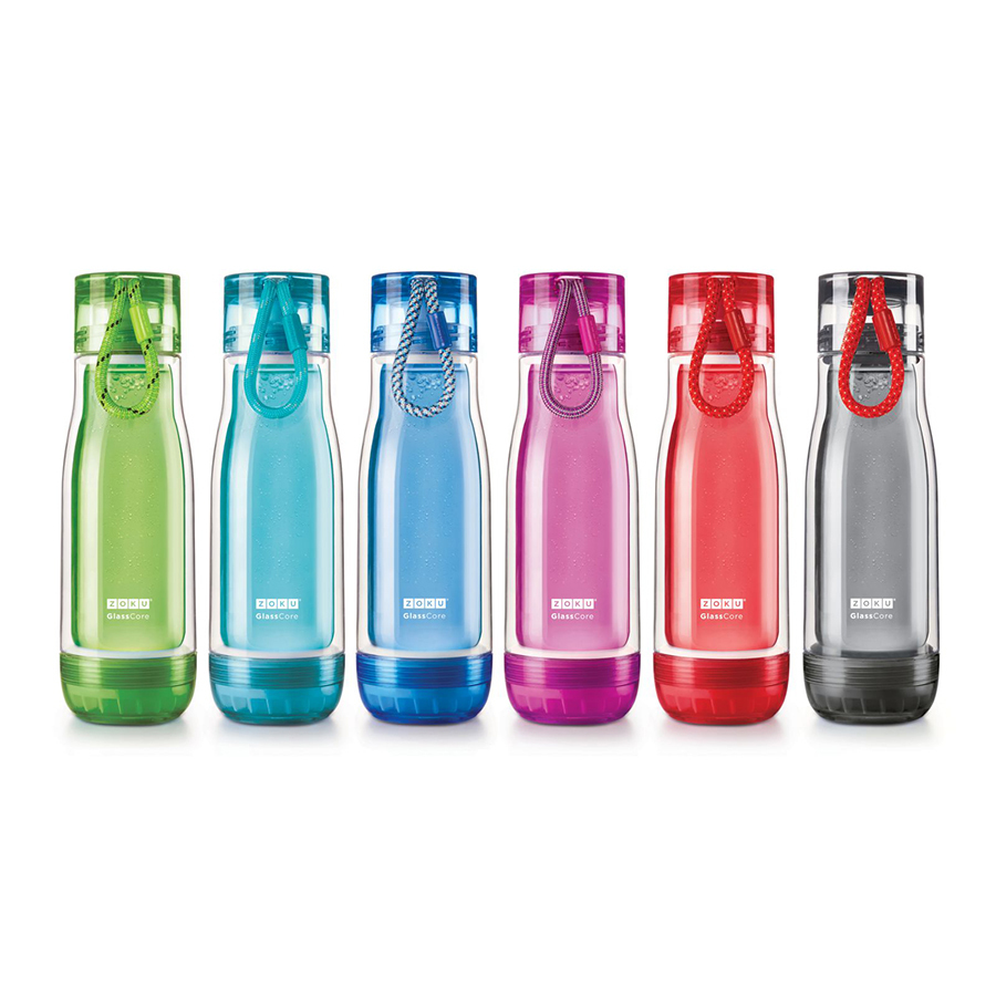 Компактная бутылка Zoku идеально подойдет для тех, кто регулярно занимается спортом и любит активный образ жизни. Бутылка выполнена из боросиликатного стекла и заключена в пластиковый корпус, укрепленный с двух сторон силиконовыми ударопрочными подкладками. Крышка полностью герметична, оснащена прочным и гибким шнурком для переноски и закрывается при повороте всего на 90° благодаря запатентованной технологии Rapid Lock™. Защитная конструкция с двойными стенками помогает избежать конденсации. Бутылка совмещает в себе все преимущества стекла и пластика - она не накапливает запахи, ее легко мыть и удобно брать с собой. Объем - 475 мл. Не содержит вредных примесей и бисфенола-А. Не предназначена для газированных напитков. Не подходит для использования в морозильной камере и микроволновой печи. Моется вручную.