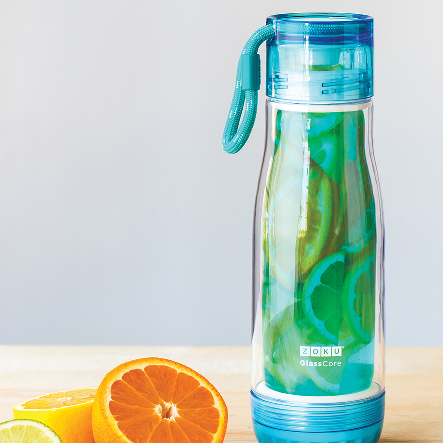 Компактная бутылка Zoku идеально подойдет для тех, кто регулярно занимается спортом и любит активный образ жизни. Бутылка выполнена из боросиликатного стекла и заключена в пластиковый корпус, укрепленный с двух сторон силиконовыми ударопрочными подкладками. Крышка полностью герметична, оснащена прочным и гибким шнурком для переноски и закрывается при повороте всего на 90° благодаря запатентованной технологии Rapid Lock™. Защитная конструкция с двойными стенками помогает избежать конденсации. Бутылка совмещает в себе все преимущества стекла и пластика - она не накапливает запахи, ее легко мыть и удобно брать с собой. Объем - 475 мл. Не содержит вредных примесей и бисфенола-А. Не предназначена для газированных напитков. Не подходит для использования в морозильной камере и микроволновой печи. Моется вручную.