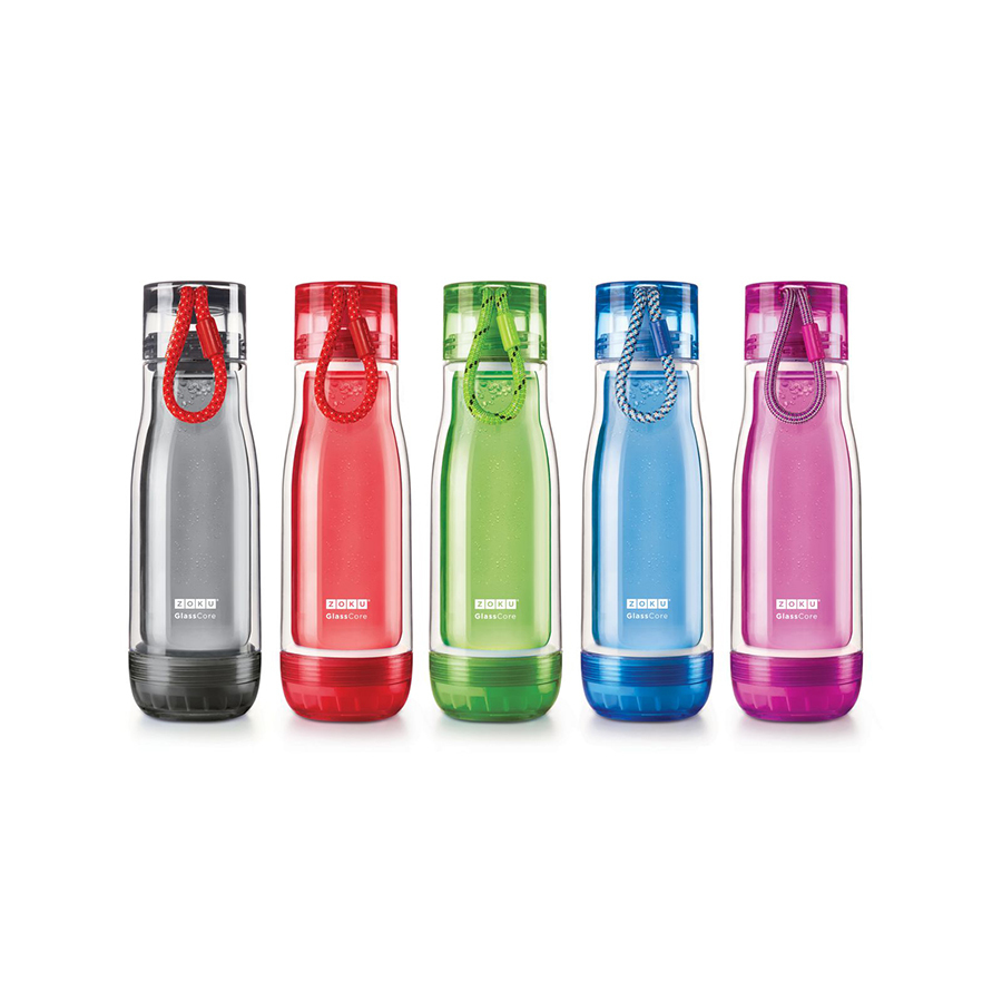 Компактная бутылка Zoku идеально подойдет для тех, кто регулярно занимается спортом и любит активный образ жизни. Бутылка выполнена из боросиликатного стекла и заключена в пластиковый корпус, укрепленный с двух сторон силиконовыми ударопрочными подкладками. Крышка полностью герметична, оснащена прочным и гибким шнурком для переноски и закрывается при повороте всего на 90° благодаря запатентованной технологии Rapid Lock™. Защитная конструкция с двойными стенками помогает избежать конденсации. Бутылка совмещает в себе все преимущества стекла и пластика - она не накапливает запахи, ее легко мыть и удобно брать с собой. Объем - 475 мл. Не содержит вредных примесей и бисфенола-А. Не предназначена для газированных напитков. Не подходит для использования в морозильной камере и микроволновой печи. Моется вручную.