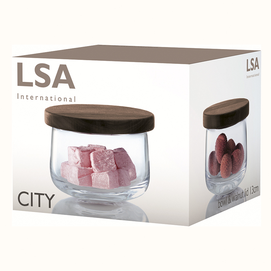 Мультифункциональная чаша из выдувного стекла с деревянной крышкой из ореха. В ней одинаково красиво будут смотреться разноцветные сладости, многослойные десерты, свежие салаты, сезонные фрукты или соль для ванны или ароматические смесь из высушенных цветов. Чаша дополнит изысканную сервировку обеда или станет стильным элементом декора кухни, гостиной или ванны. City — коллекция чаш и блюд для сервировки самых разных закусок и десертов, а также для декора интерьеров. Классические материалы, выдувное стекло и натуральный орех, в сочетании с современным дизайном делают чаши и подставки отличным дополнением к любой коллекции посуды. Изделие рекомендуется мыть вручную в тёплой мыльной воде и вытирать насухо мягкой тканью. Мелкие пузырьки внутри выдувного стекла не являются браком (круглые пузырьки < 3 мм и овальные пузырьки < 5 мм): это допустимые индивидуальные особенности изделий, изготовленных вручную. Деревянные детали рекомендуется протирать мягкой щеткой и влажной тканью, позволяя дереву высохнуть самостоятельно. Не погружайте их в воду и не мойте в посудомоечной машине.