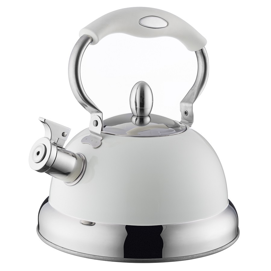 Чайник со свистком Living – практичная и удобная посуда для приготовления чая, кофе и других горячих напитков. Модель выполнена в мягких пастельных тонах, что позволяет ей стать гармоничным дополнением классического или современного интерьера кухни. При создании изделия мастера используют качественную нержавеющую сталь, которая не поддается воздействию коррозии и высокой температуры. На наружную поверхность корпуса нанесено термостойкое покрытие, которое придает изделию привлекательный внешний вид. Посуда дополнена мягкой ручкой для удобного захвата ладонью и свистком, который сигнализирует о закипании воды. Чайник Living бренда Typhoon подходит для любой варочной поверхности, в том числе для индукции.