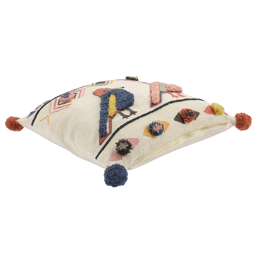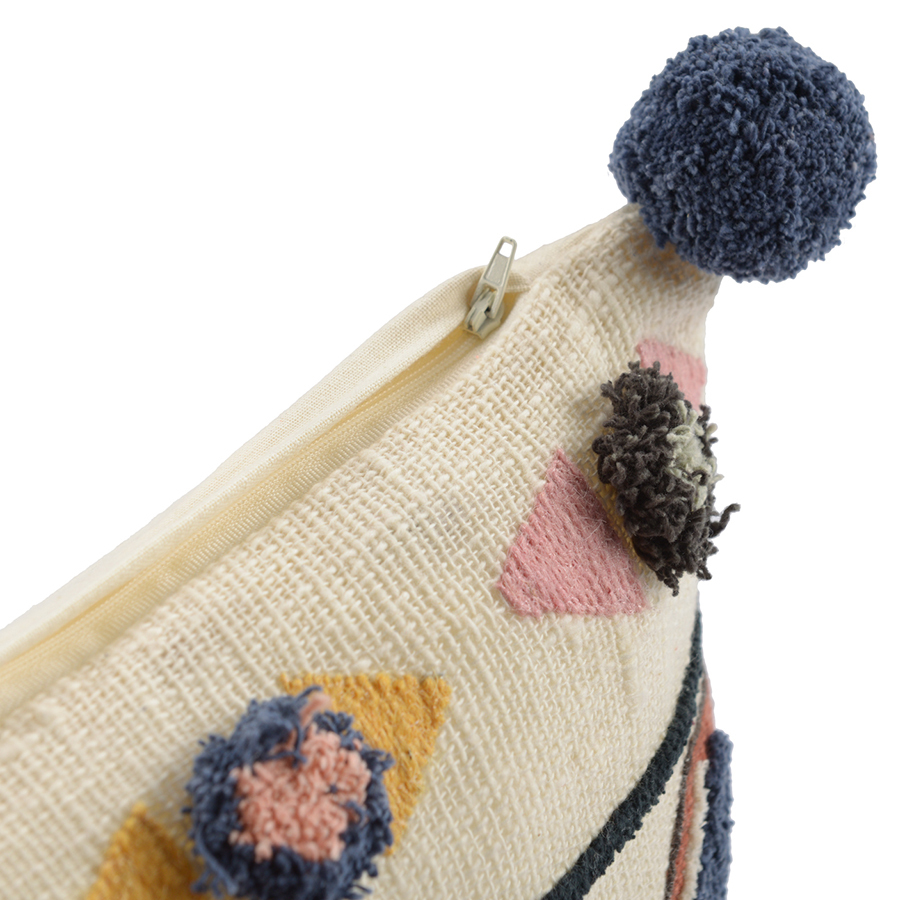 - Имеет уникальный дизайн, притягивающий взгляды, с декоративными акцентами в виде вышивки и помпонов.