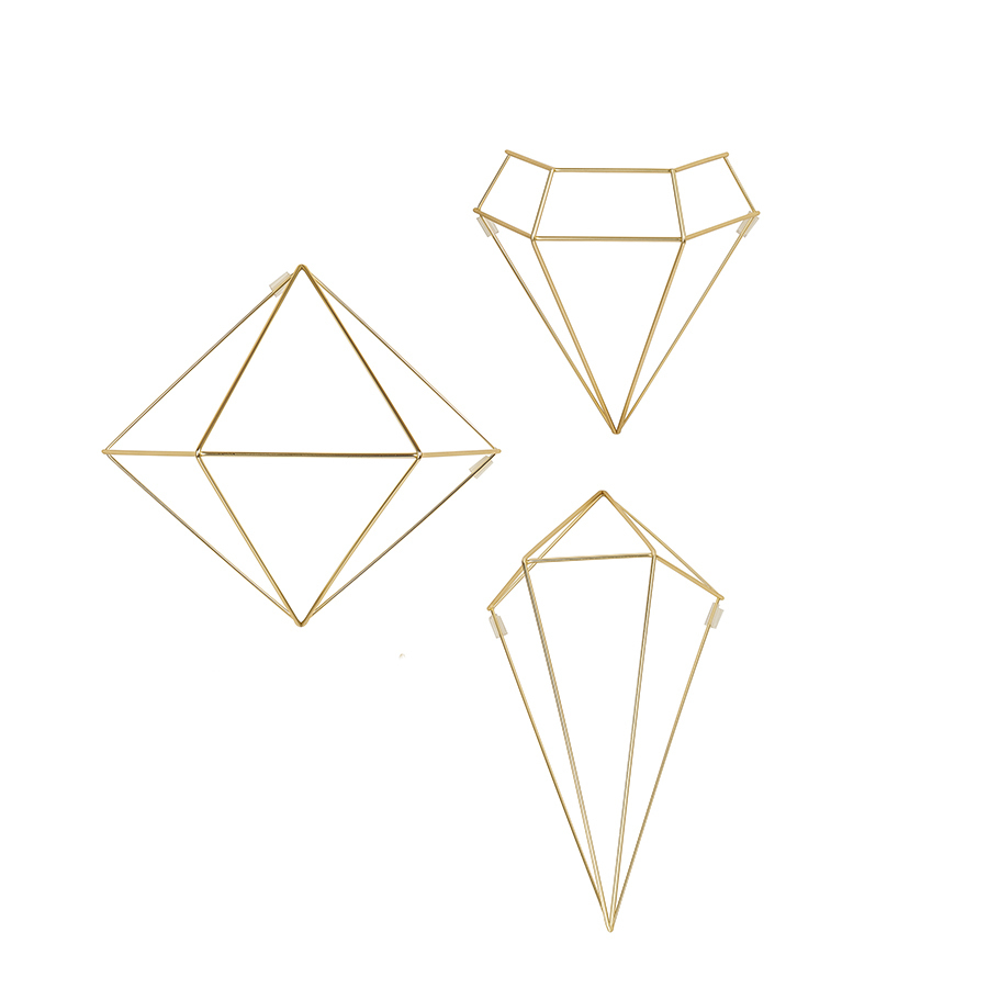 Иногда нужно мыслить масштабнее: декор для стен с легкой руки дизайнеров Umbra может переместиться на стол или быть подвешен к потолку. Геометрические фигуры из стальной проволоки выглядят эффектно и футуристично, постоянно привлекая внимание гостей. Легкие, не собирающие пыль и легко перемещающиеся и трансформирующиеся украшения могут стать изюминкой интерьера. В наборе 3 геометрические фигуры, каждая в количестве 2- штук (т.е. всего 6 предметов). Крепления к стене в комплекте. Размеры фигур: - 25 х 23 х 22 см - 16 х 31 х 14 см - 18 х 18.4 х 16 см