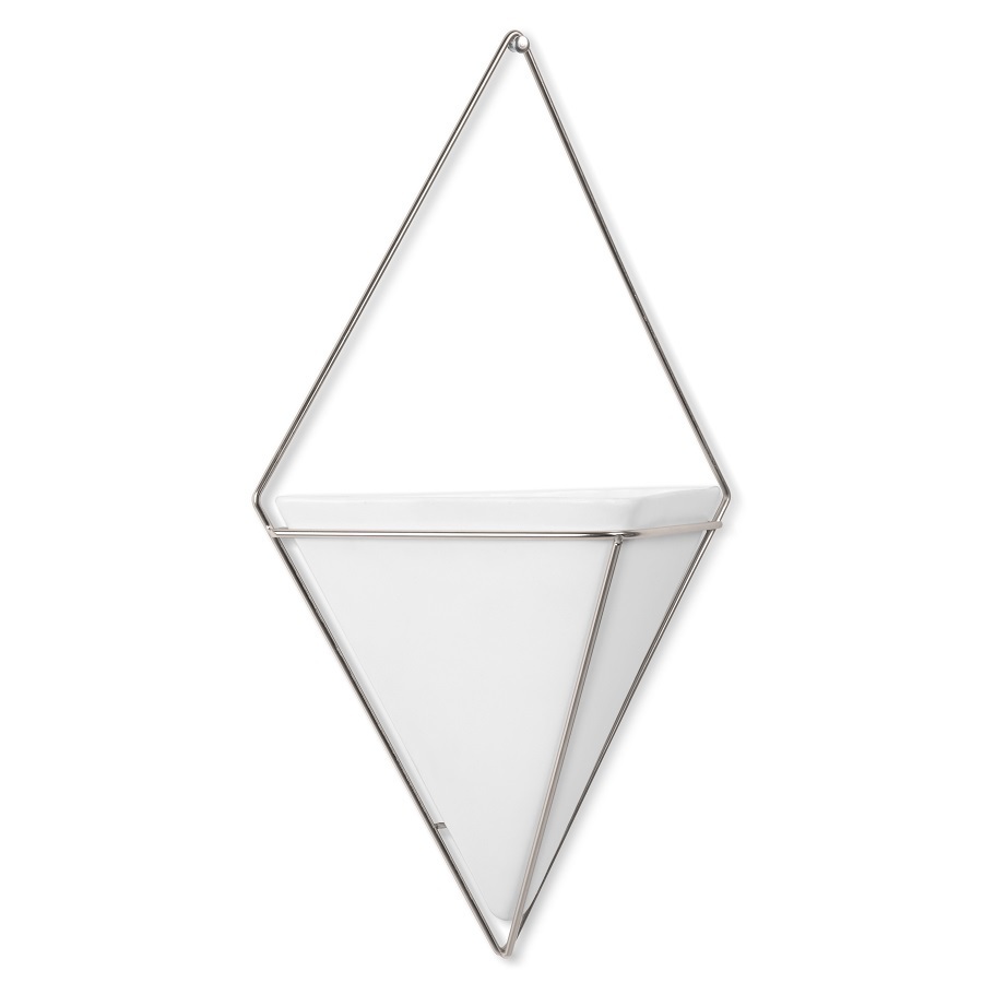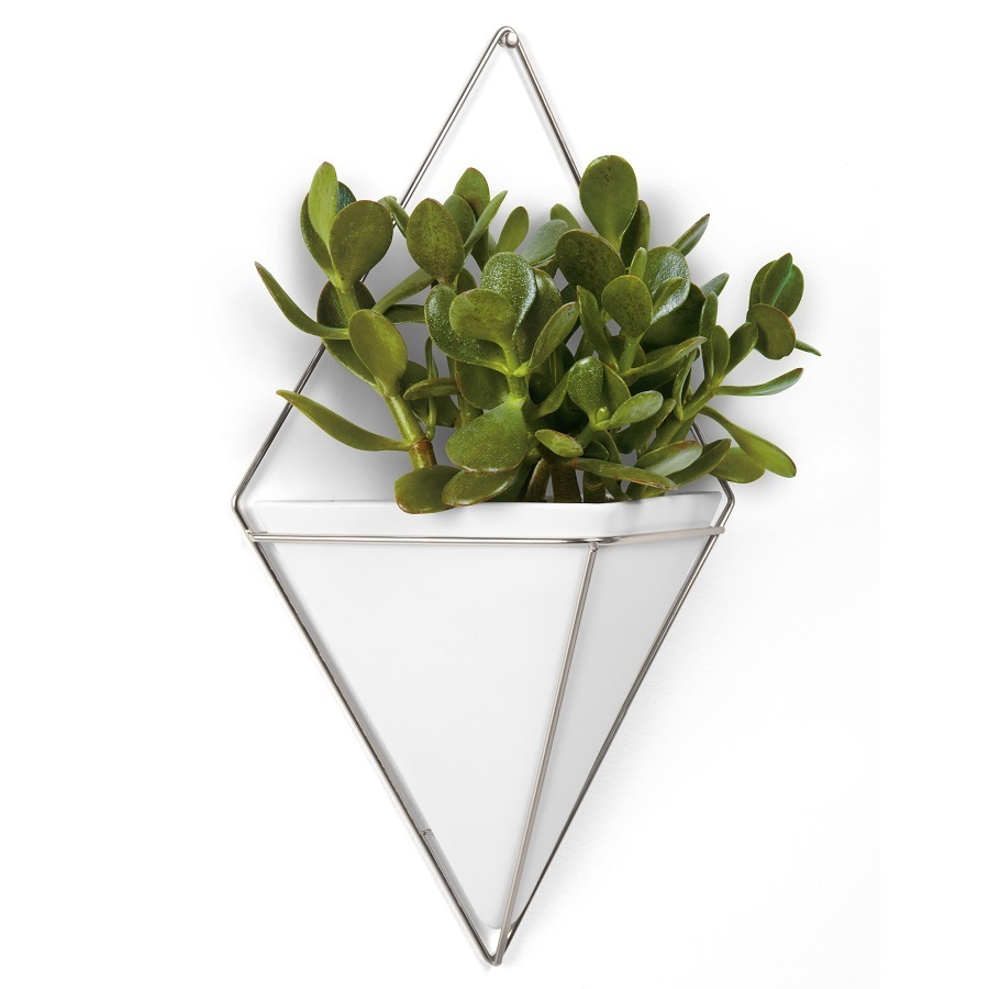 Декор для стен Trigg торговой марки Umbra – оригинальный цветочный горшок в форме бриллианта. Изделие имеет строгие геометрические формы, что позволяет использовать его для декорирования классического интерьера помещений. Кашпо выполнено из керамики высокого качества, которая характеризуется прочностью и наличием гладкой поверхности. Подвесить декор можно на гвоздь или вешалку за проволочный крепеж. Изделие подходит для цветов, а также для хранения косметических средств, офисных вещей и прочих аксессуаров. Дизайнер: David Quan. Материал: керамика, металл. Размеры: 10х22х39 см.