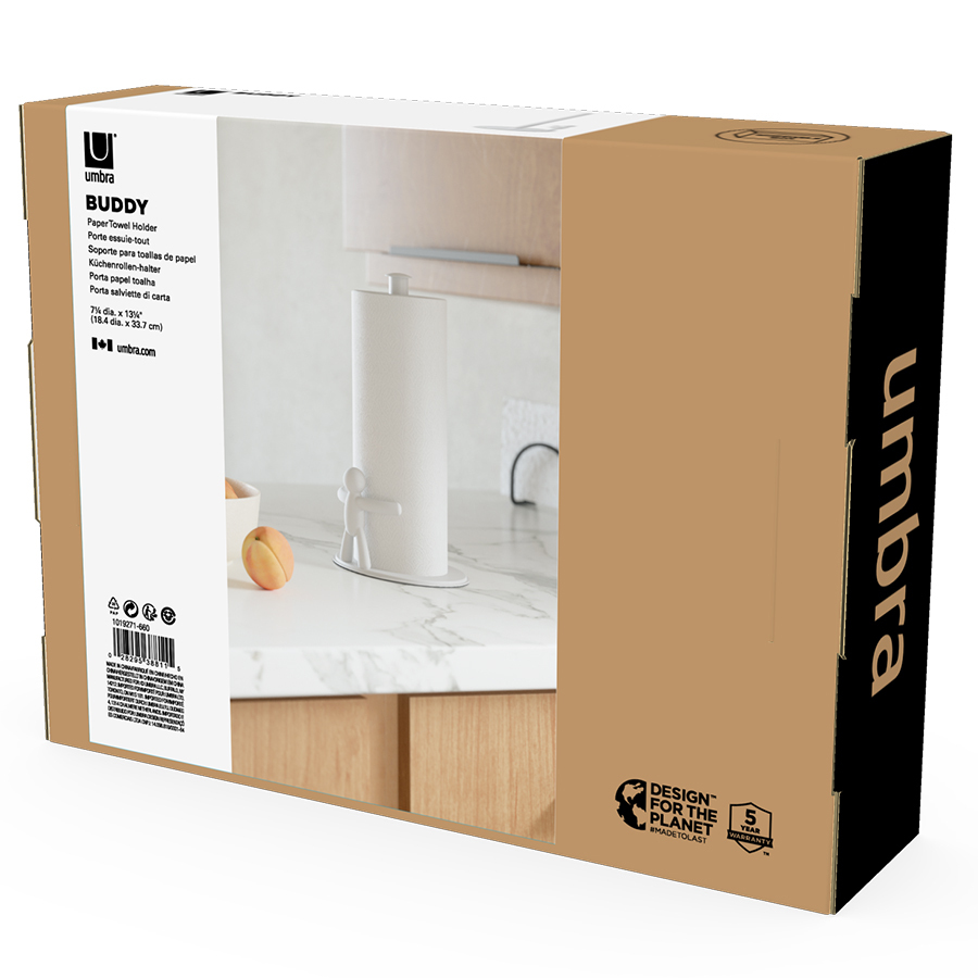 Держатель для бумажных полотенец с забавным человечком Buddy поможет сделать акцент на интересных деталях интерьера и привнесет в оформление кухни нотки иронии. Функциональные элементы из высокопрочной стали обеспечивают изделию простой уход и долгий срок службы. Держатель имеет устойчивое основание – вам не потребуется придерживать рулон рукой, чтобы оторвать салфетку нужной длины.