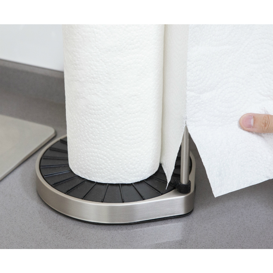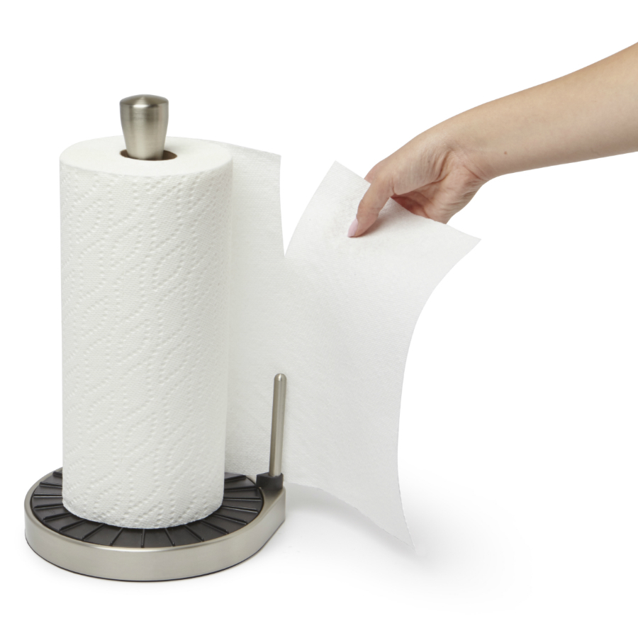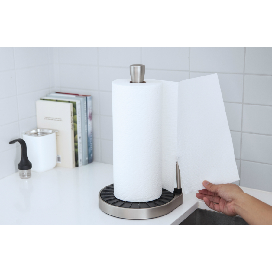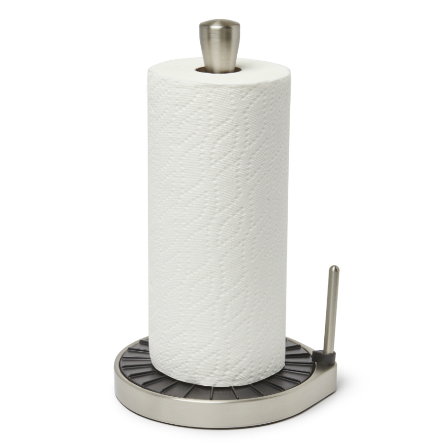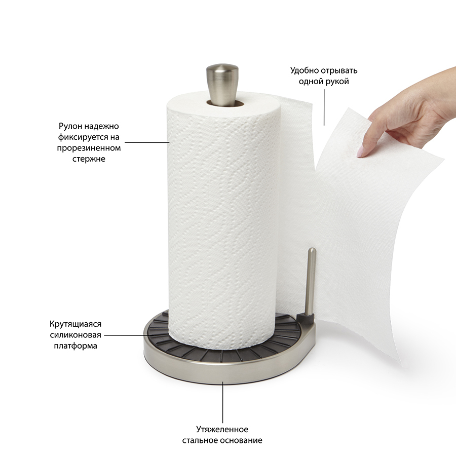 Держатель для бумажных полотенец Spin – современный и стильный кухонный аксессуар от Umbra. Создавая модель, дизайнеры вдохновились популярным игровым шоу «Колесо Фортуны». Силиконовый тикер с ребристой поверхностью замедляет вращение рулона, тем самым позволяет легко рвать бумажные полотенца одной рукой. Благодаря утяжеленному никелированному основанию аксессуар защищен от опрокидывания. Теперь кухонные полотенца будут выглядеть аккуратно и всегда быть под рукой. Дизайн: David Green, Dominic Montante.