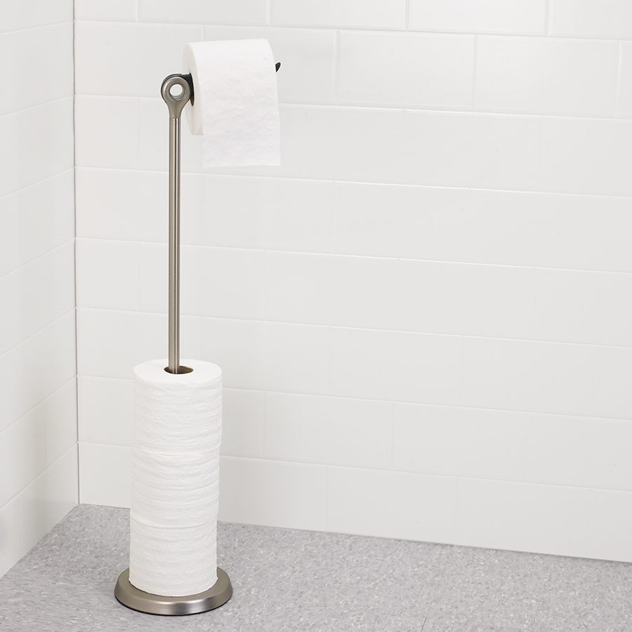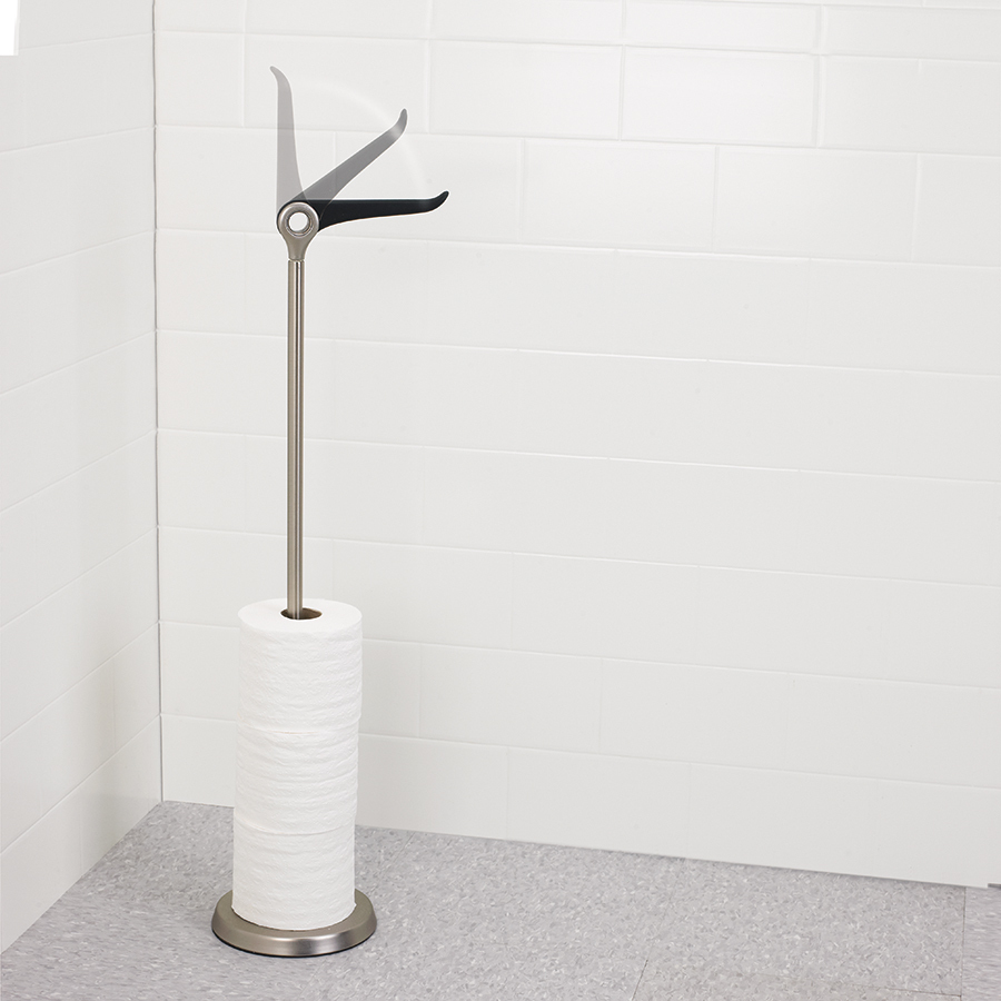 Наверное каждый из нас хотя бы раз замечал, как не вовремя и не кстати заканчивается туалетная бумага. Видимо, дизайнерам Umbra тоже знакома такая ситуация. И, чтобы сделать жизнь себе и окружающим проще, было придумано такое нехитрое приспособление - держатель для туалетной бумаги. По всей длине держателя можно разместить до 5 запасных рулонов, а на верхнюю крутящуюся перекладину повесить шестой, используемый в настоящий момент. Просто и практично!