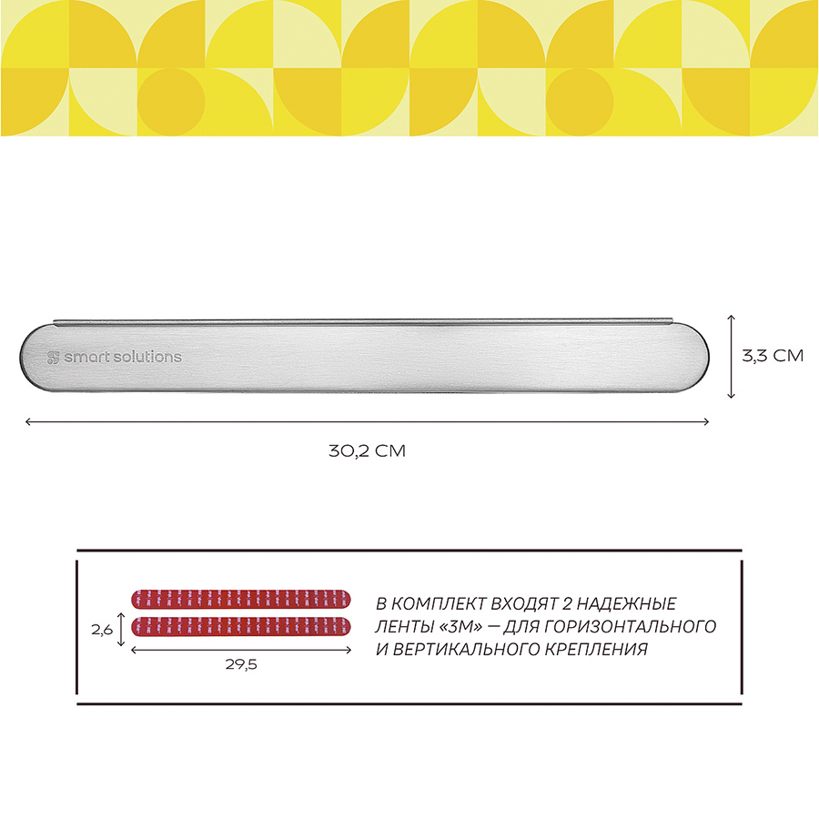 Держатель магнитный SmartChef от бренда Smart Solutions обеспечит удобное и безопасное хранение кухонных инструментов, таких как ножи, ложки, шумовки и других.