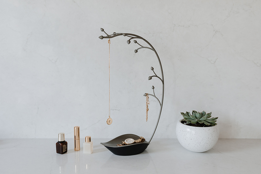 Удобная подставка для украшений - лучший способ для аккуратного хранения Ваших драгоценностей. На 12 импровизированных выступов-держателей в виде набухнувших почек растения можно повесить кольца, браслеты, цепочки. Брошки, увесистые ожерелья, кулоны можно сложить в поддон у основания Орхидеи . Цвет подставки создает впечатление бронзового напыления.