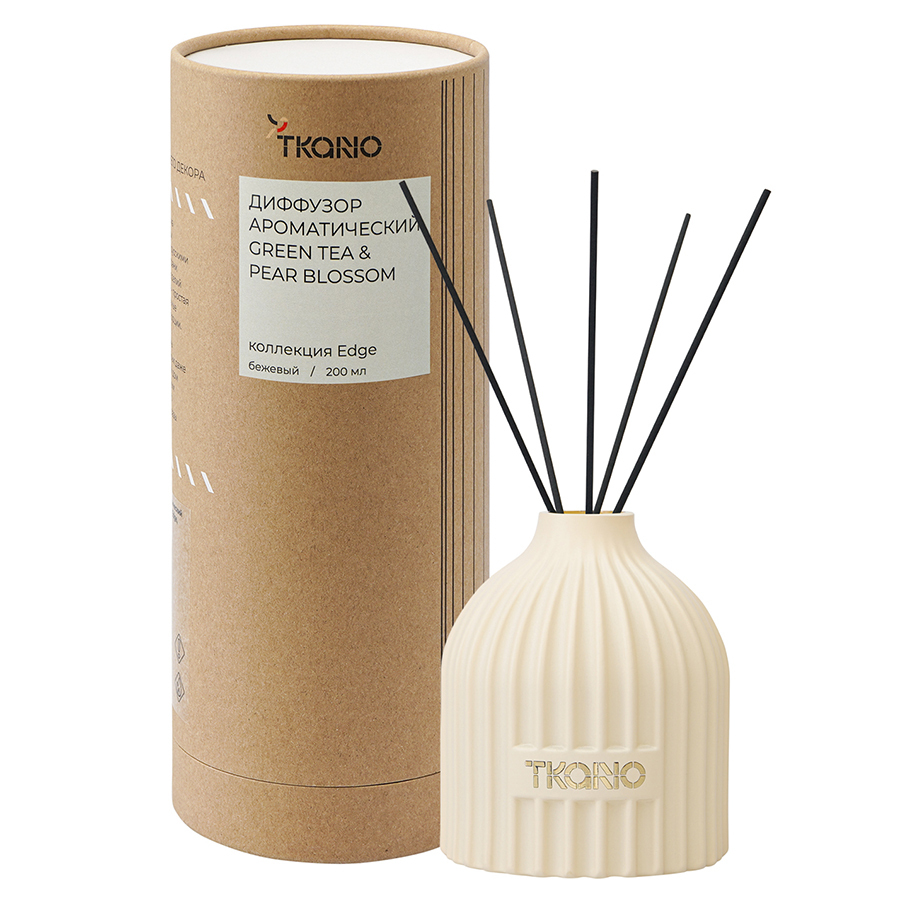 Диффузор ароматический Green tea & Pear blossom бежевого цвета из коллекции Edge с дизайном, вдохновленным русскими традициями, отлично подойдет для домашнего декора и создания в интерьере уютной, расслабляющей атмосферы. Фактурные грани и округлая поверхность стеклянного флакона отсылают нас к образу купола – символу духовного подъема и стремления к совершенству. В комплект входят 10 фибровых палочек.