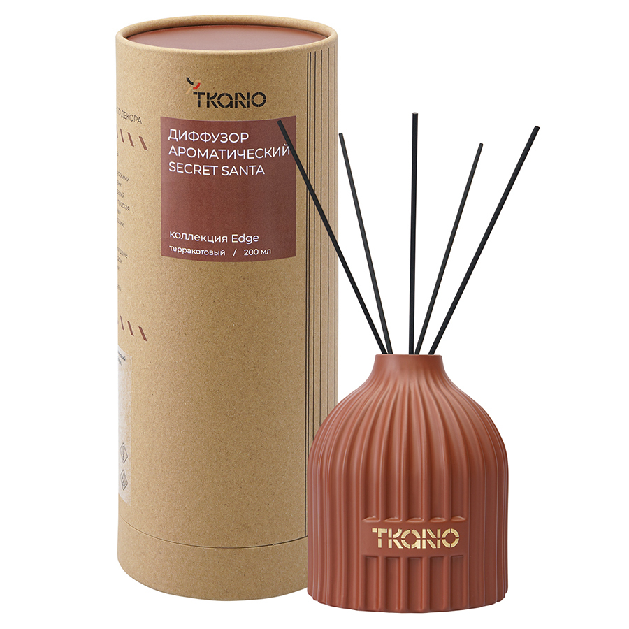 Диффузор ароматический Secret Santa терракотового цвета из коллекции Edge с дизайном, вдохновленным русскими традициями, отлично подойдет для домашнего декора и создания в интерьере уютной, расслабляющей атмосферы. Фактурные грани и округлая поверхность стеклянного флакона отсылают нас к образу купола – символу духовного подъема и стремления к совершенству. В комплект входят 10 фибровых палочек.