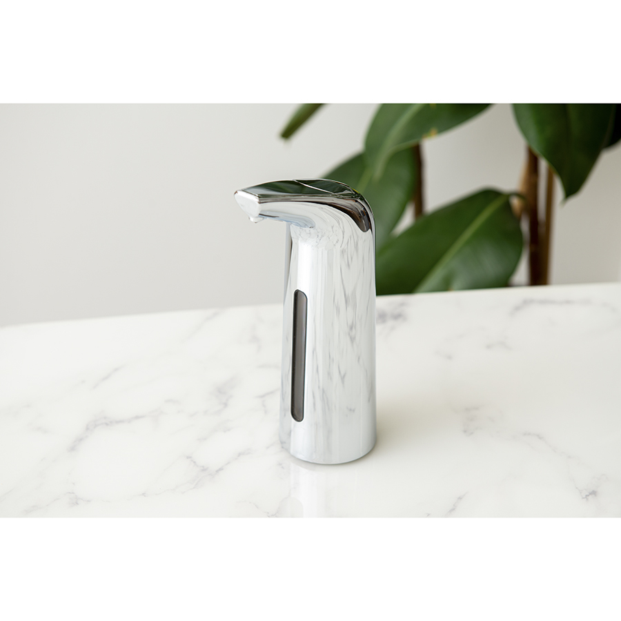 Сенсорный диспенсер Asne обеспечивает бесконтактную подачу жидкого мыла, что является его главным преимуществом в сравнении с механическими моделями. Емкость выполнена из прочного АБС-пластика с износостойким хромированным покрытием. Благодаря нейтральному оттенку и лаконичному дизайну аксессуар органично вписывается в различные стилевые решения.