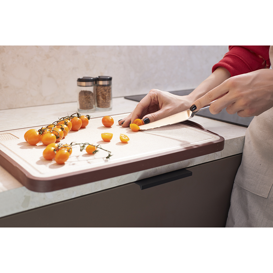 - Специальные желобки задерживают сок и жидкость, позволяя сохранять порядок на кухне.