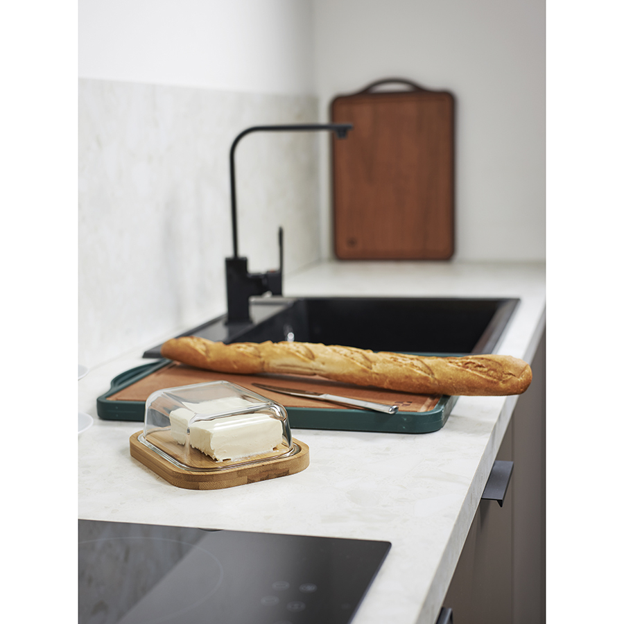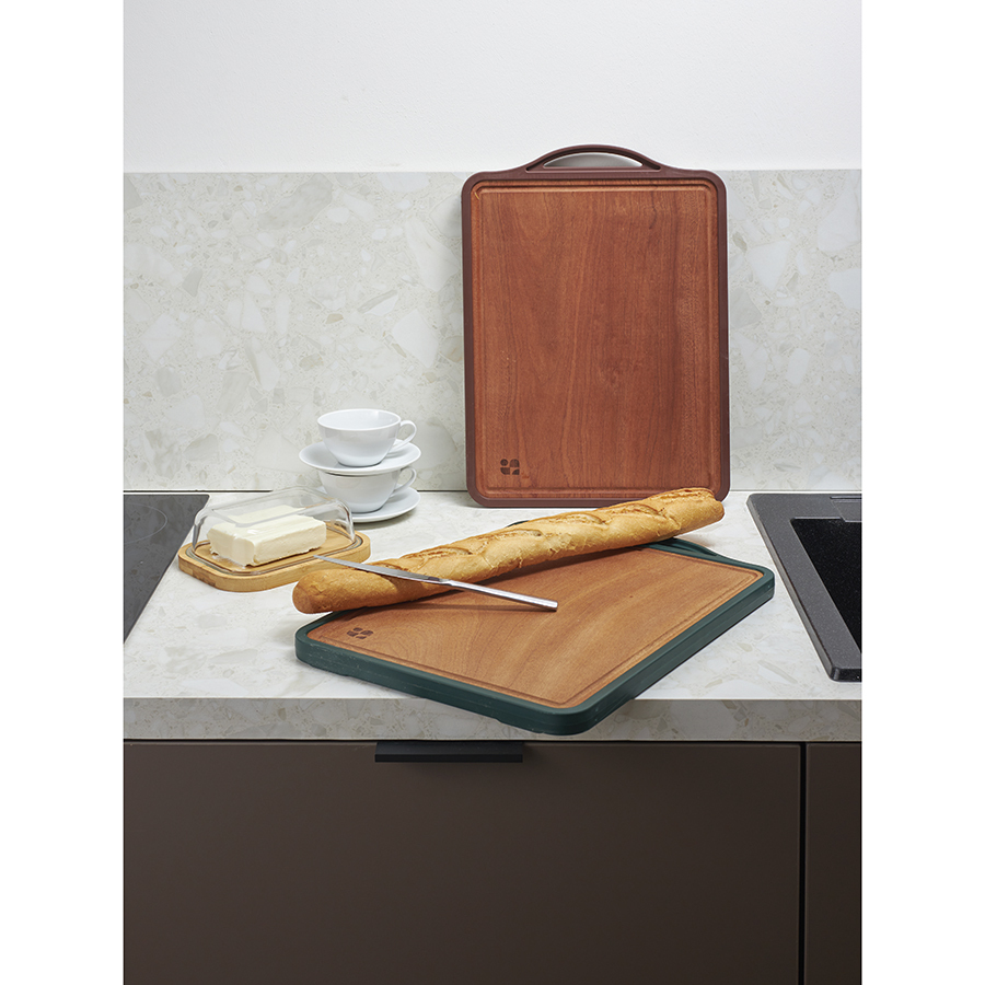 - Доска легко моется, не скользит во время использования и имеет две рабочие поверхности, благодаря чему идеально подходит для нарезки любых продуктов.