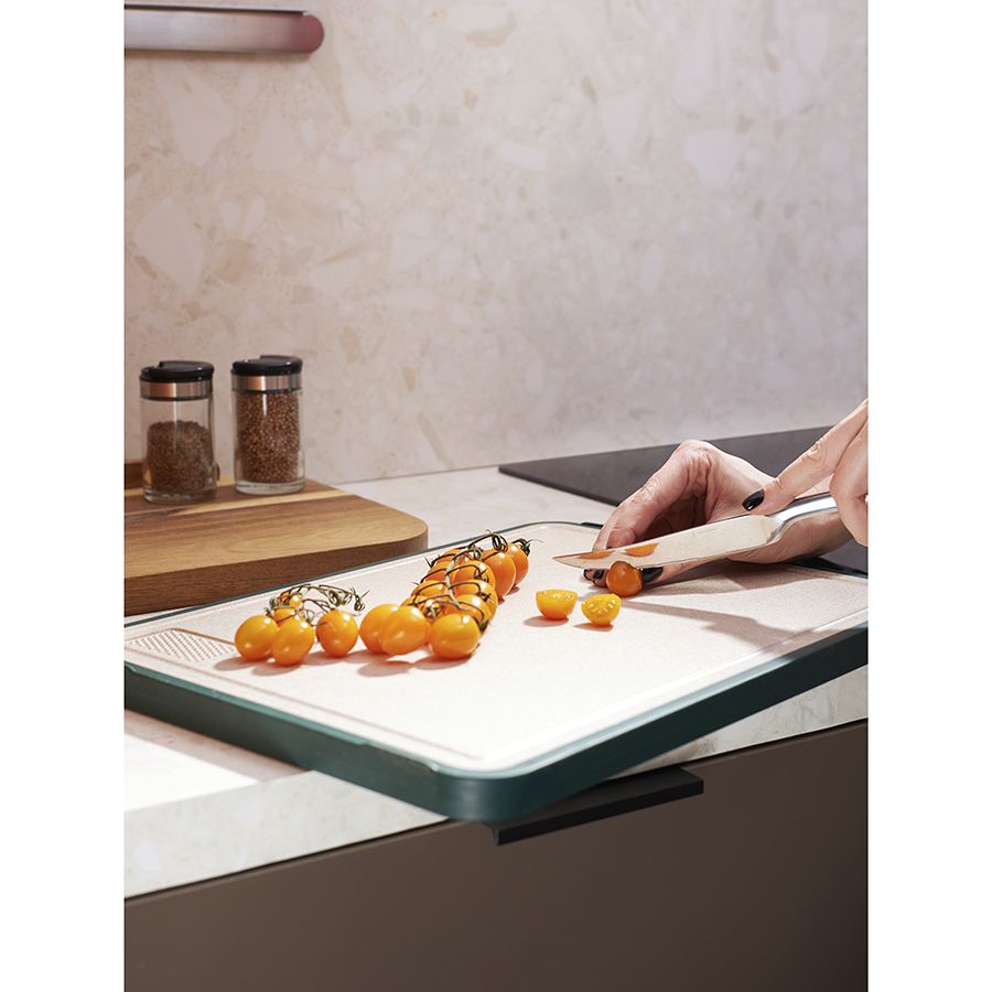 - Специальные желобки задерживают сок и жидкость, позволяя сохранять порядок на кухне.
