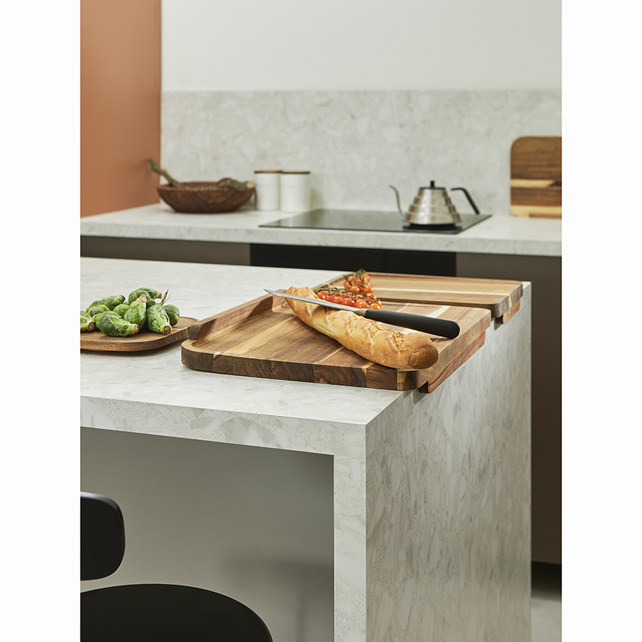 Доска разделочная Fix&Cut из натуральной древесины акации – стильный предмет интерьера и незаменимый помощник на кухне, который позволит вам чувствовать себя настоящим шеф-поваром. Доска идеально подходит для шинковки, нарезки различных продуктов, работы с тестом и за счет особенностей дизайна обладает рядом преимуществ.