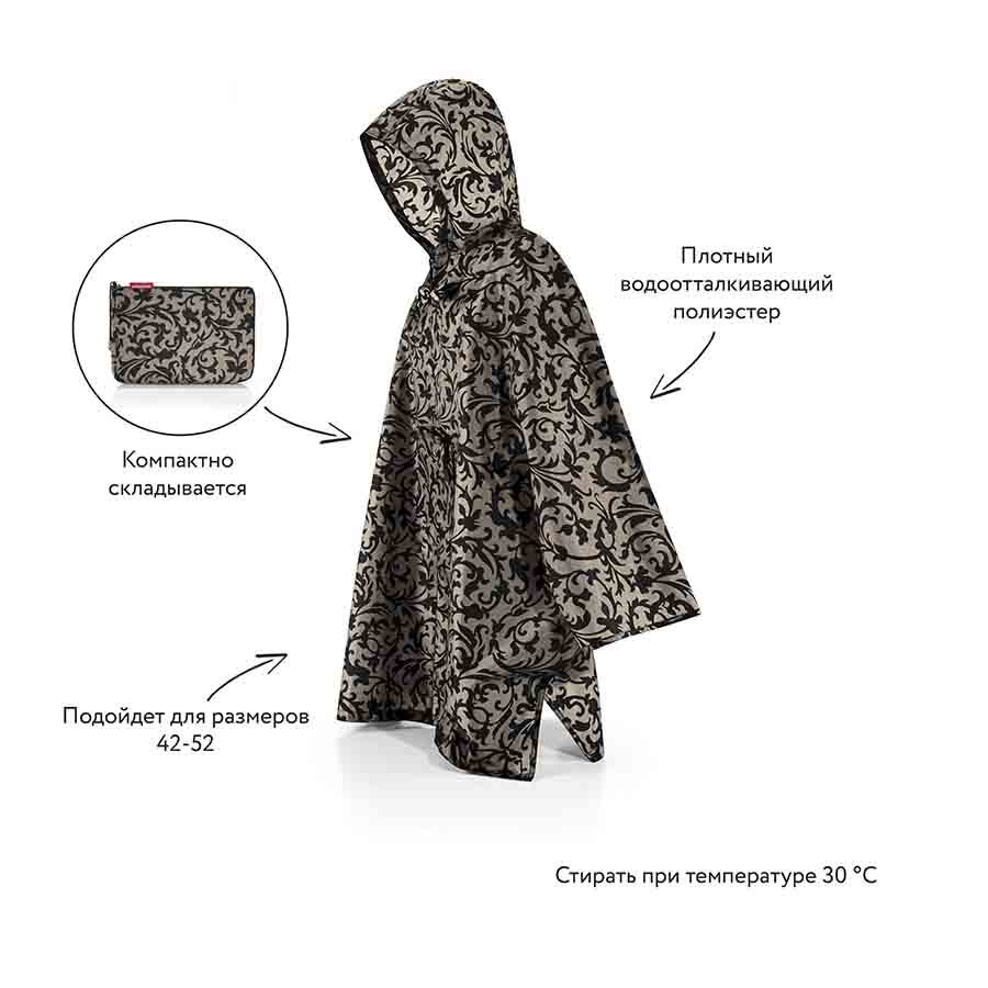 Дизайн дождевика продуман до мелочей: молния на широком воротнике и две кнопки подмышками. Он складывается до размеров внешнего кармана и его можно взять с собой на прогулку, в поход или путешествие. Дождевик создан в варианте one-size и подойдет для размеров 40-52. Его можно быстро и легко надеть в любой момент: на это уйдет не больше минуты!