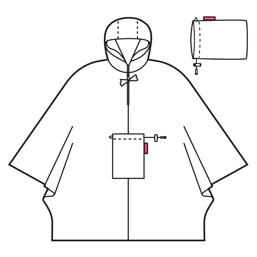 Дизайн дождевика продуман до мелочей: молния на широком воротнике и две кнопки подмышками. Он складывается до размеров внешнего кармана и его можно взять с собой на прогулку, в поход или путешествие. Дождевик создан в варианте one-size и подойдет для размеров 40-52. Его можно быстро и легко надеть в любой момент: на это уйдет не больше минуты!