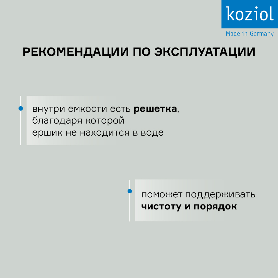 Внутри емкости есть решетка, благодаря которой ершик не стоит в воде. При необходимости щетку можно заменить.