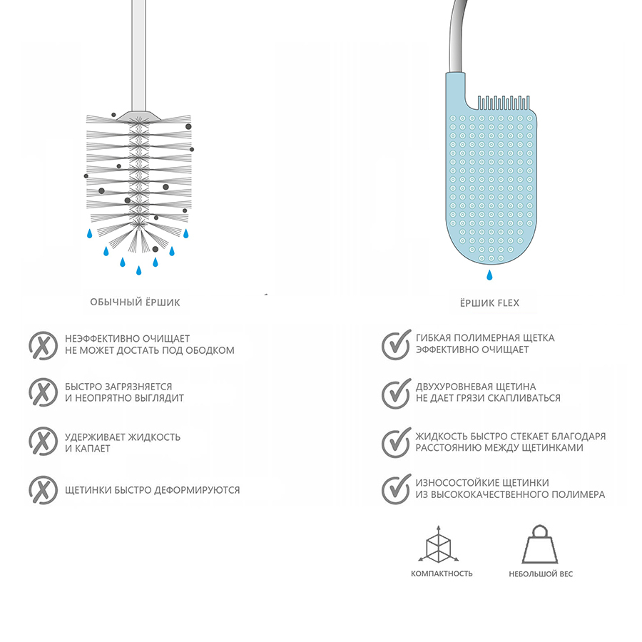 Ёршик для унитаза с большим отсеком для хранения Flex Plus — инновационный аксессуар, который решает все проблемы поддержания чистоты и порядка санузла. Он создан с учётом всех минусов обычных ёршиков.