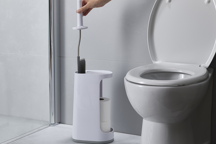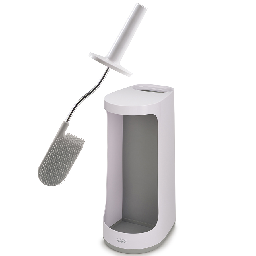 Гибкая полимерная щетка эффективно очищает все труднодоступные места и не впитывает воду. Особенность ёршика – практичная конструкция с защитой от засорения. Широкое расстояние между щетинками не дает грязи скапливаться. После уборки ёршик не надо стряхивать, пытаясь очистить и высушить, благодаря уникальному дизайну Flex™, вода быстро стекает со щетки и не оставляет лишних капель. Удобная и компактная подставка оснащена специальным многофункциональным отсеком, который можно использовать для хранения аэрозолей, моющих средств и туалетной бумаги. Таким образом, они будут спрятаны от постороннего глаза, но останутся под рукой. При уборке с отбеливающим средством стоит избегать его попадания на ручку из нержавеющей стали.