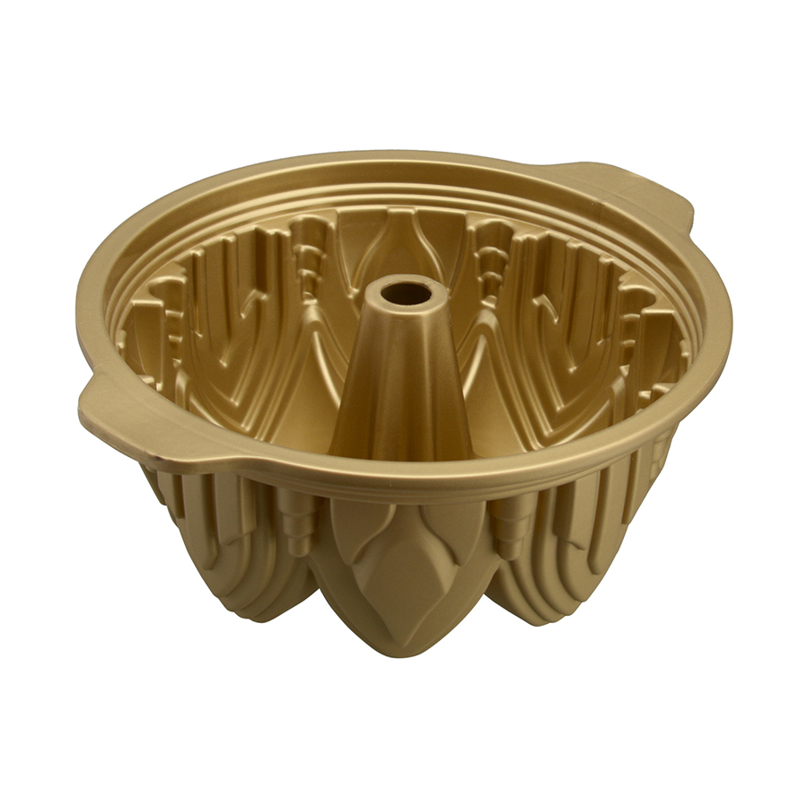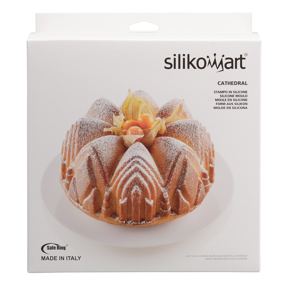 Форма выдерживает температуру от - 60 до + 230 °С. Силикон не содержит вредный бисфенол-А и соответствует европейским стандартам качества. Он не имеет запаха и не дымится во время готовки. Материал гибкий, прочный, устойчивый к перепадам температур. Форма выдерживает до 3000 использований. Перед использованием необходимо смазать изделие маслом. Диаметр: 22 см. Объем: 2200 мл.