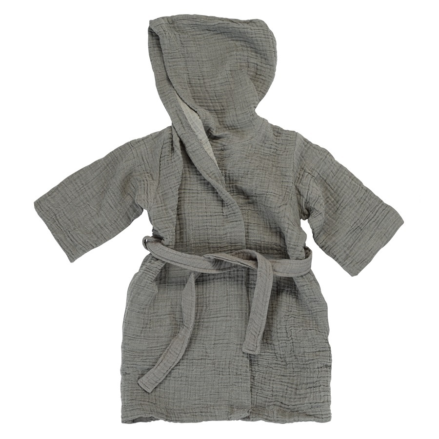 Халат из жатого хлопка серого цвета из коллекции Essential лаконичного дизайна и нейтральной расцветки подойдет и мальчику, и девочке. Изделие с капюшоном и с удобным запахом фиксируется на талии широким поясом.