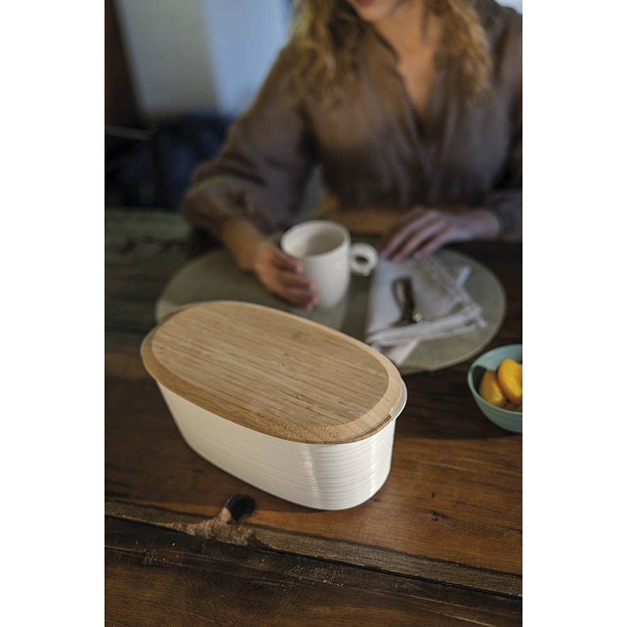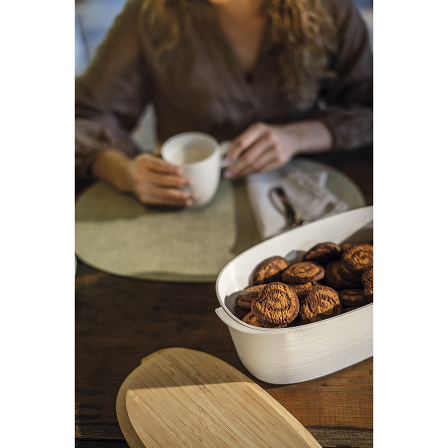 Хлебница из перерабатываемого пластика с экологичной бамбуковой крышкой спасет выпечку от высыхания и украсит пространство.