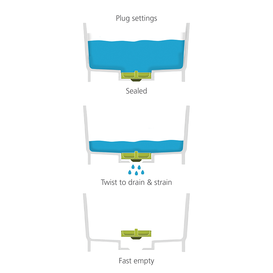 Емкость идеальна как для использования внутри раковины (что особенно удобно в период отключения горячей воды), так и вне ее.