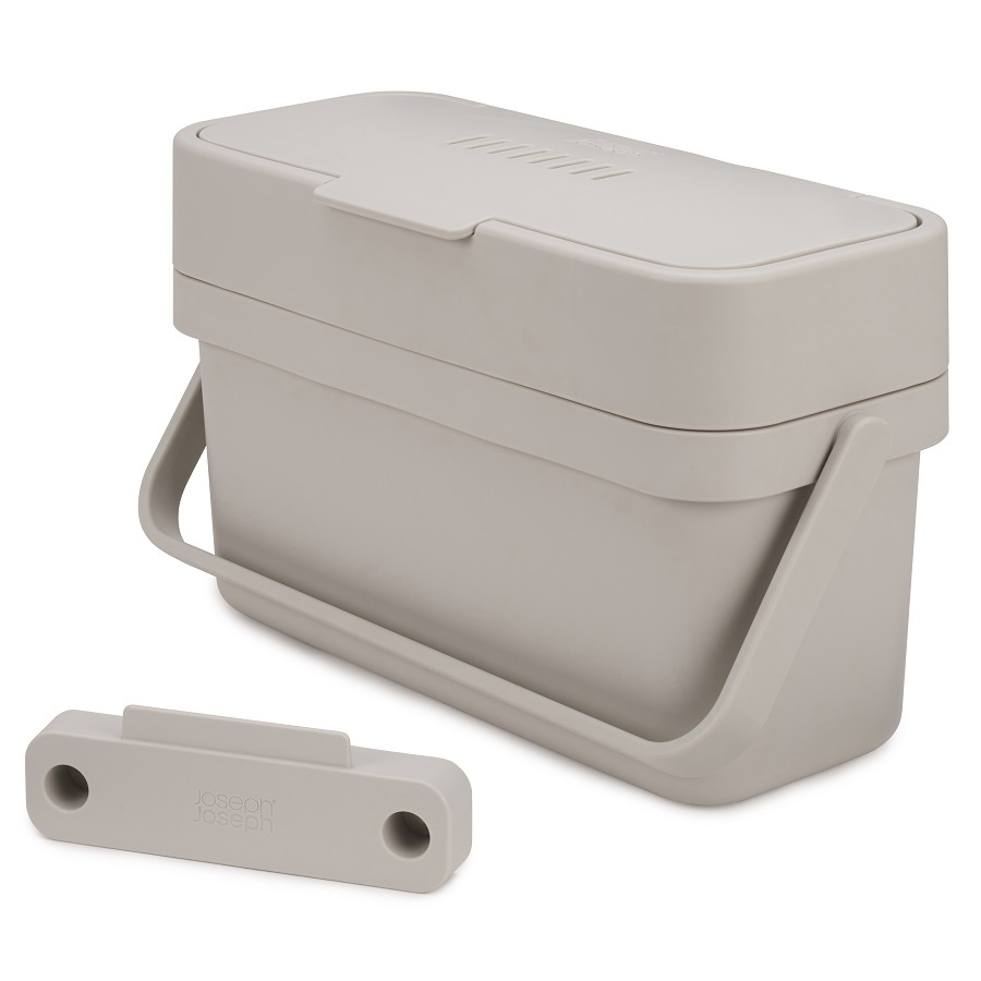 Регулируемое вентиляционное отверстие помогает уменьшить накопление влаги и запаха в открытом состоянии, а также обеспечивает защиту от насекомых в закрытом. Изящный дизайн позволяет хранить контейнер на столешнице или в шкафу, а благодаря кронштейну, который идет в комплекте, емкость можно закрепить на двери Объем: 4 л.