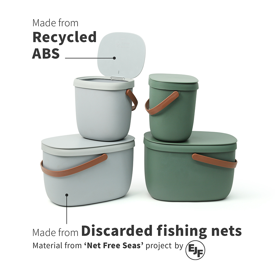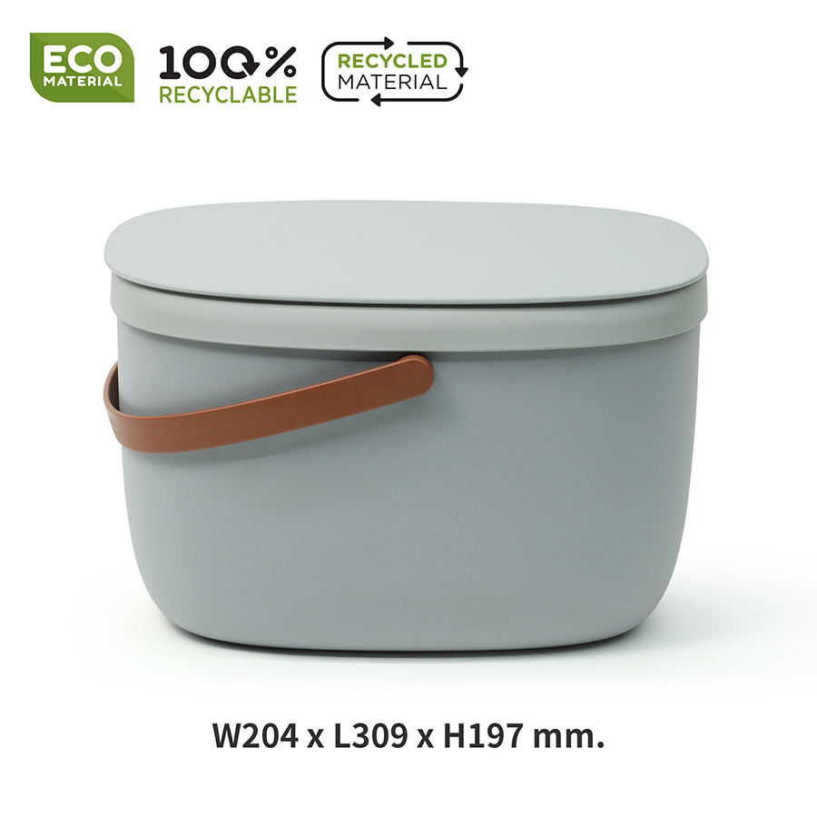 Контейнер для пищевых отходов Foody представляет собой емкость из переработанного АБС-пластика. Изделие имеет привлекательный дизайн, благодаря чему украсит собой любой современный кухонный интерьер. Наличие откидной крышки позволяет исключить распространение неприятного запаха. Удобная ручка обеспечивает комфортное перемещение тары. Практичный материал изготовления гарантирует простой уход и долговечность.