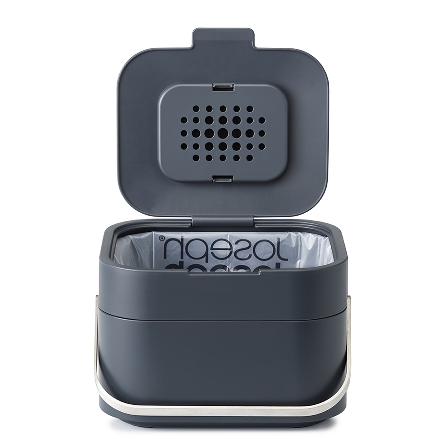 Контейнер, разработанный с целью минимизировать возникновение неприятных запахов от пищевых отходов. Инновационная вентилируемая конструкция позволяет воздуху циркулировать внутри емкости, что способствует уменьшению влажности. Освежающий фильтр впитывает неприятные запахи. Крышка плотно закрывается, не выпуская запахи наружу. Ручка из нержавеющей стали обеспечивает удобство при переноске. Таким образом, во время приготовления пищи контейнер можно установить на рабочий стол, а затем убрать в укромное место. Корпус из полипропилена очень легко очищается. Специальные отверстия и съемный ободок по краям контейнера аккуратно удерживают мусорный мешок.