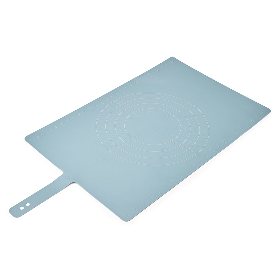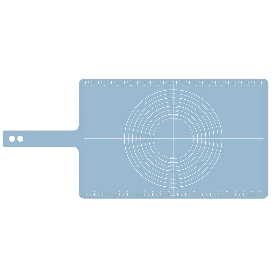 Широкий силиконовый коврик оптимального размера закрывает рабочую поверхность таким образом, чтобы раскатываемые коржи не касались столешницы, оставляя ее чистой. Удобные мерные деления помогут определить диаметр блюда. Благодаря силикону коврик не скользит при раскатывании. После применения легко сворачивается и застегивается на кнопку для компактного хранения. Идеален в комплекте с регулируемой скалкой. Не подходит для использования в духовом шкафу.