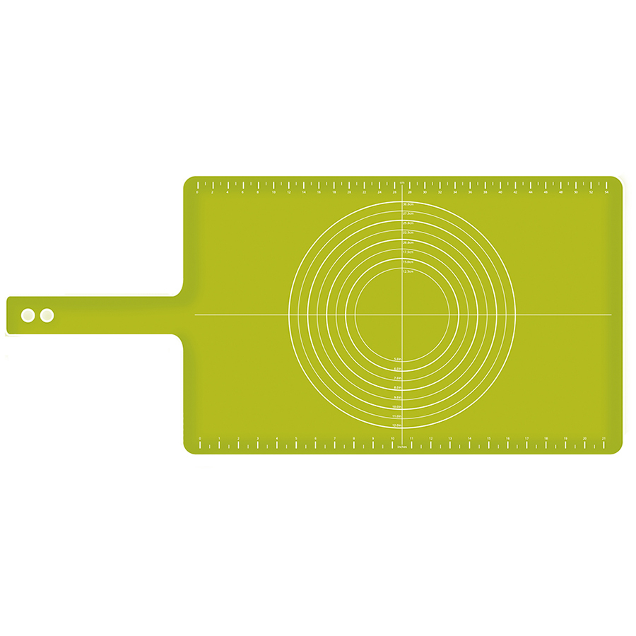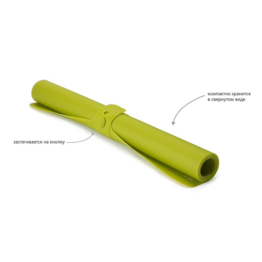 Широкий силиконовый коврик оптимального размера закрывает рабочую поверхность таким образом, чтобы раскатываемые коржи не касались столешницы, оставляя ее чистой. Удобные мерные деления помогут определить диаметр блюда. Благодаря силикону коврик не скользит при раскатывании. После применения коврик можно свернуть и застегнуть на кнопку для компактного хранения. Идеален в комплекте с регулируемой скалкой. Не подходит для использования в духовом шкафу.