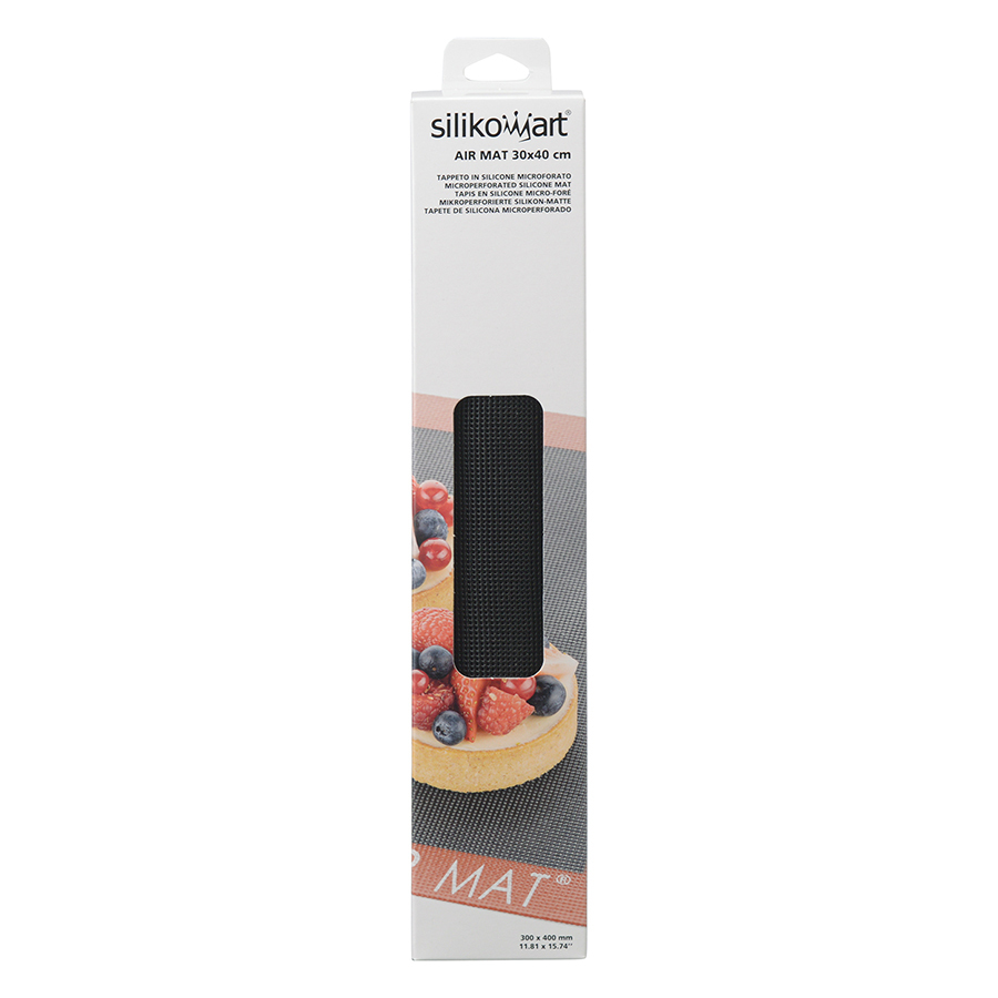 Микроперфорированный силиконовый коврик со вставкой из стекловолокна идеально подходит для приготовления эклеров, печенья, пирожков с начинкой, хлеба и пиццы.