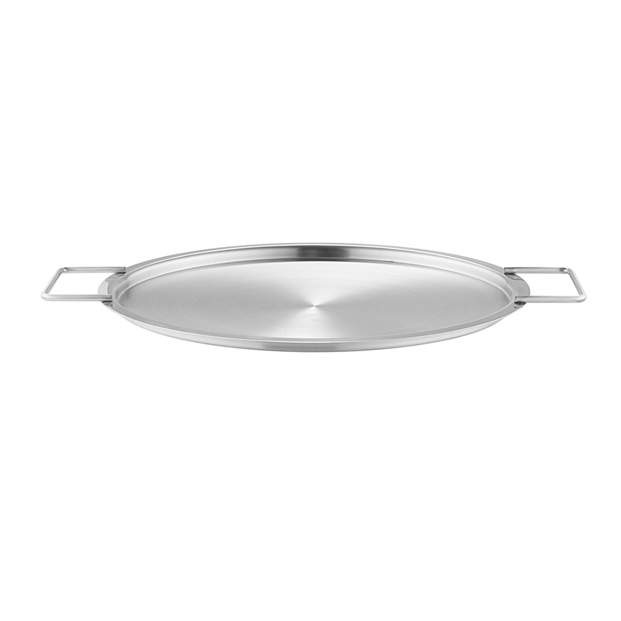 Крышка выполнена из высококачественной нержавеющей стали. Удобные боковые ручки не дают обжечься, а плоская форма позволяет разгоревать пищу прямо на крышке.