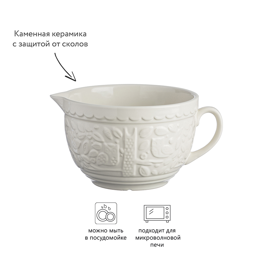 Специальный носик и эргономичная ручка позволят удобно выливать жидкое тесто в форму или крем на готовую основу. Для изготовления кувшина мастера используют качественную керамику с высокопрочным глазурованным покрытием. Благодаря этому посуда устойчива к сколам и трещинам.