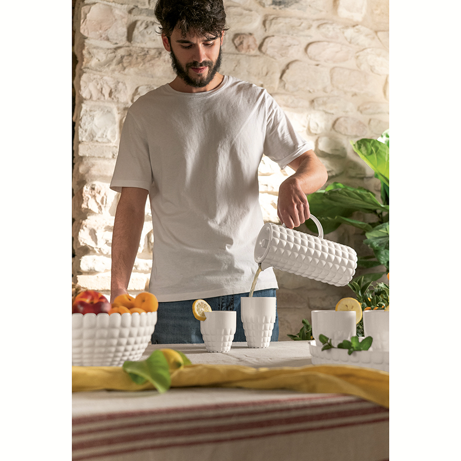 Кувшин Tiffany идеально подходит для подачи соков, освежающих лимонадов и может использоваться для сервировки как в помещении, так и на свежем воздухе. Наличие крышки исключает попадание внутрь емкости пыли и насекомых.