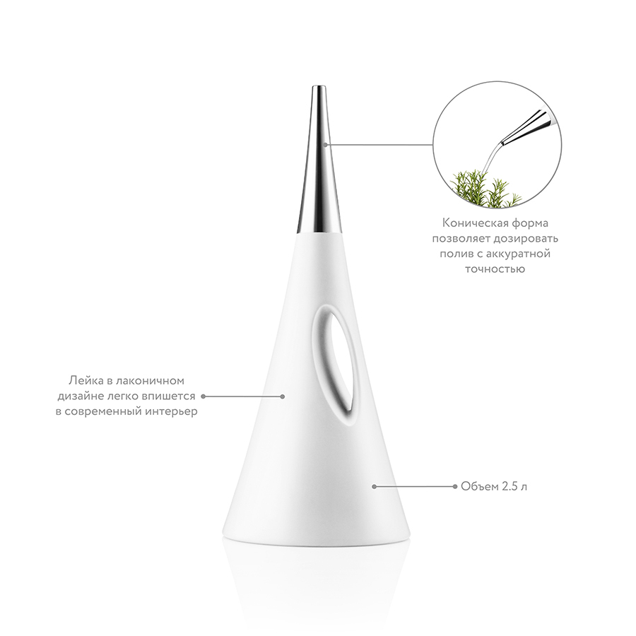 Благодаря яркому дизаи?ну леи?ку теперь можно не прятать за шторами или растениями.Коническии ?носик позволяет точно дозировать полив, сохраняя постоянныи? поток воды. Чтобы заполнить леи?ку, носик нужно снять. Изготовлено из пластика.