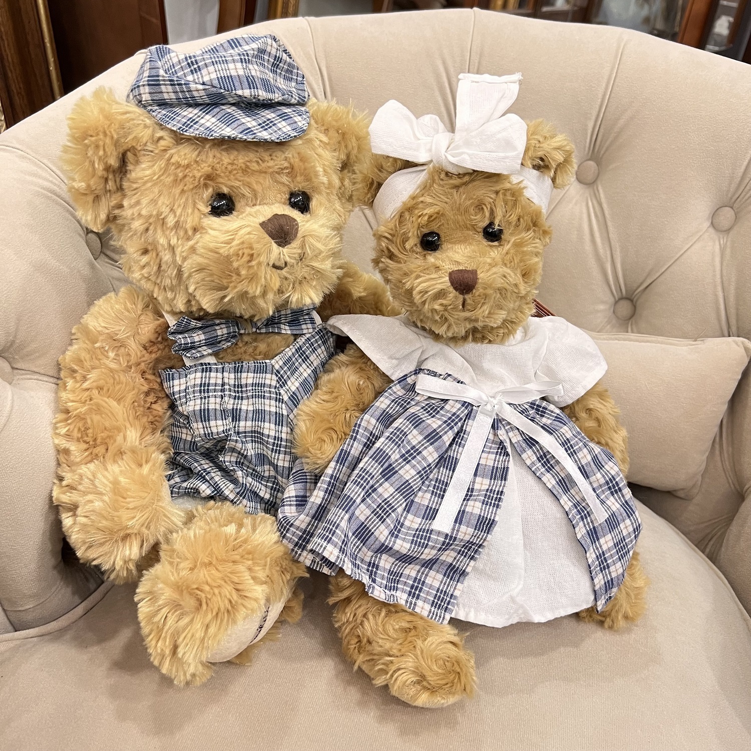 Большой мишка-мальчик в летнем костюмчике - в кепке и шортах.