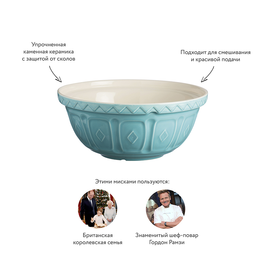 Универсальная миска Colour Mix добавит ярких цветов в современный интерьер вашей кухни. Посуда предназначена для замешивания теста, смешивания ингредиентов, а также подачи овощей и фруктов. Дизайнеры украсили изделие тисненым рисунком в стиле викторианской эпохи. Чаша выполнена из тонкой керамики, которая отличается прочностью и стойкостью к сколам. Изделие подходит для использования в микроволновой печи и морозильной камере. Миску можно мыть в посудомоечной машине.