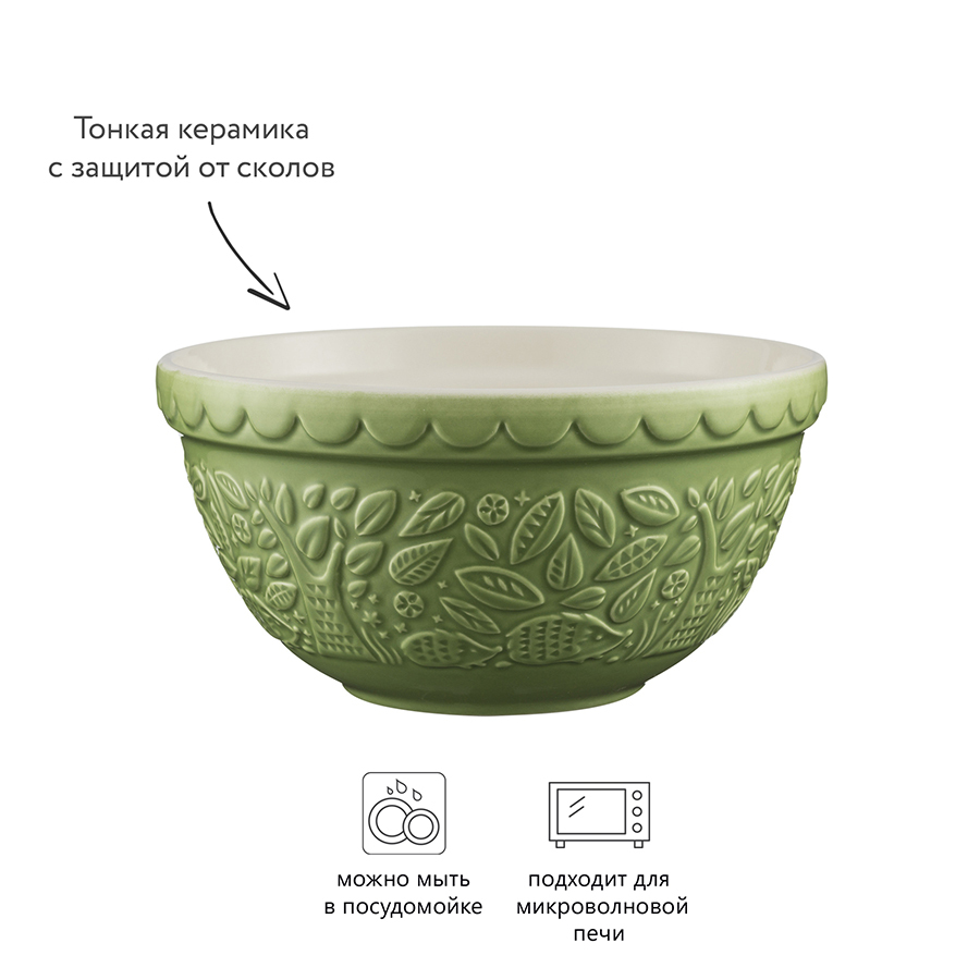 Миска для смешивания In the Forest облегчит процесс приготовления блюд на вашей кухне. Посуда предназначена для замешивания теста, смешивания ингредиентов, а также подачи салатов или фруктов. Дизайнеры украсили изделие тисненым рисунком в виде лесного пейзажа.