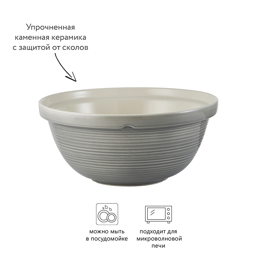 Миска для смешивания William Mason предназначена для приготовления пудинга, теста на печенье, пироги или торты. Практичная посуда с оригинальным рельефным узором станет универсальным помощником на вашей кухне. Изделие выполнено из каменной керамики, устойчивой к внешнему воздействию: высокой температуре, истиранию и агрессивной среде. Поверхность посуды покрыта высокопрочной глазурью, на которой не остается царапин от металлических кухонных приборов. Миска подходит для использования в микроволновой печи и мытья в посудомоечной машине. Не рекомендуется использование электрического миксера.