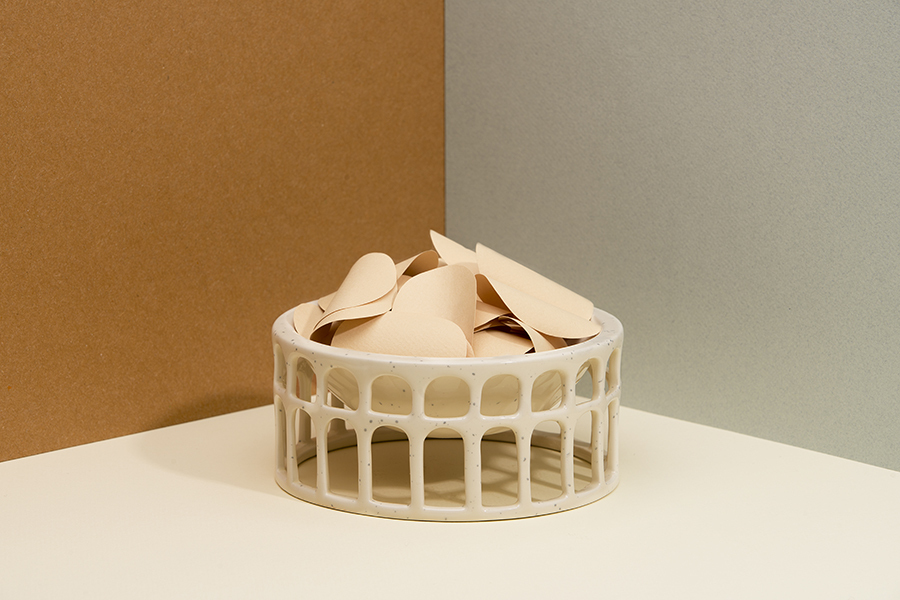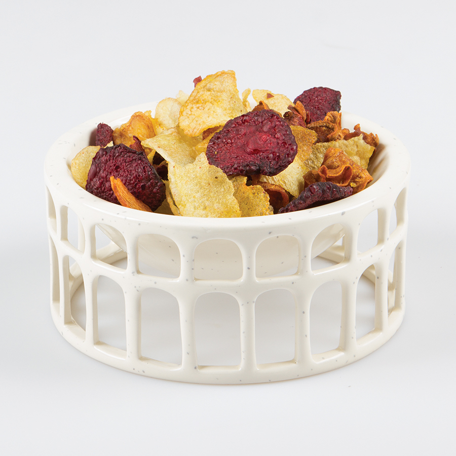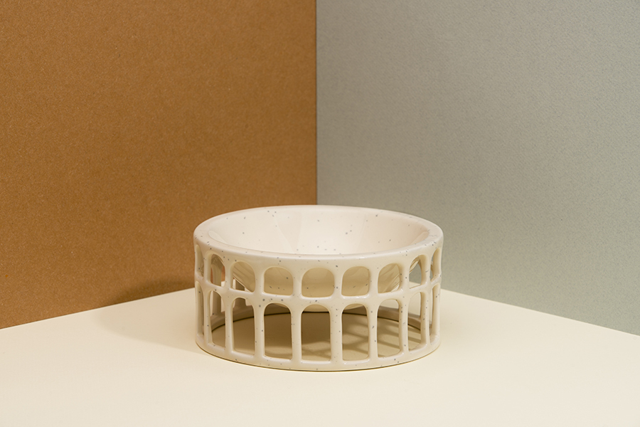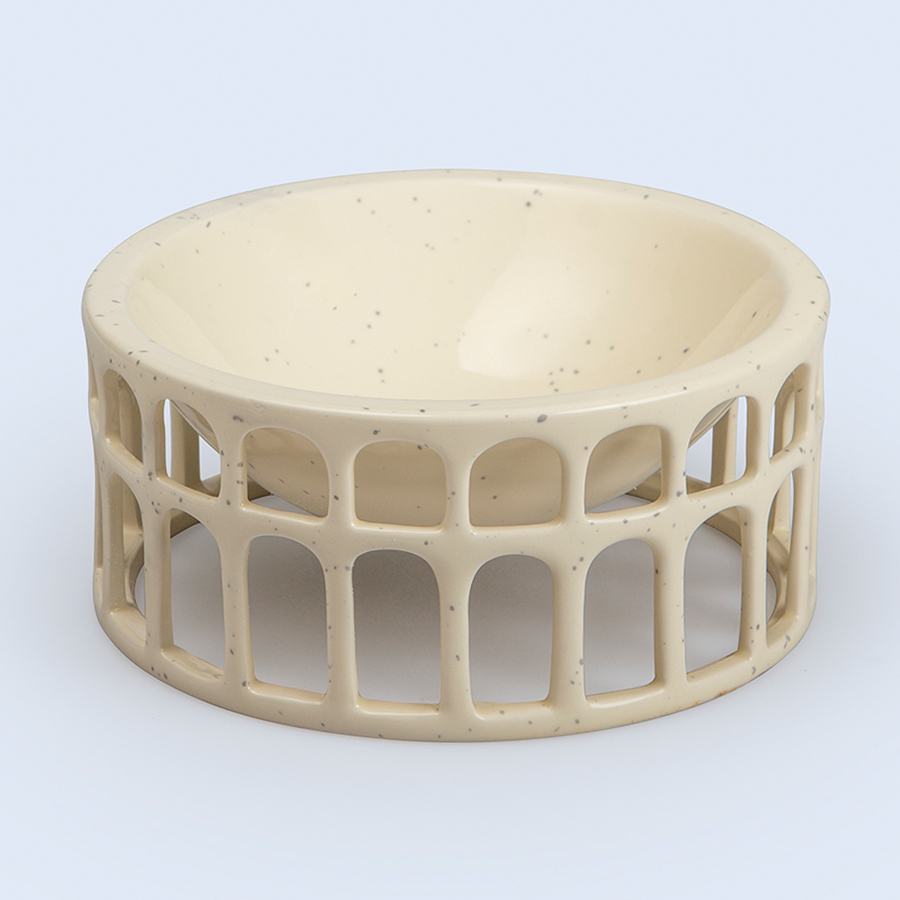 Дизайн: Миска Hestia имеет очень необычную форму, напоминающую знаменитый римский Колизей. Изделие выполнено из глянцевой однотонной керамики с мелкими вкраплениями. Миску можно использовать для сервировки и подачи фруктов, орехов, конфет, а также для различного декора – ароматических саше, свечей, ротанговых шариков и пр. Материал: керамика.