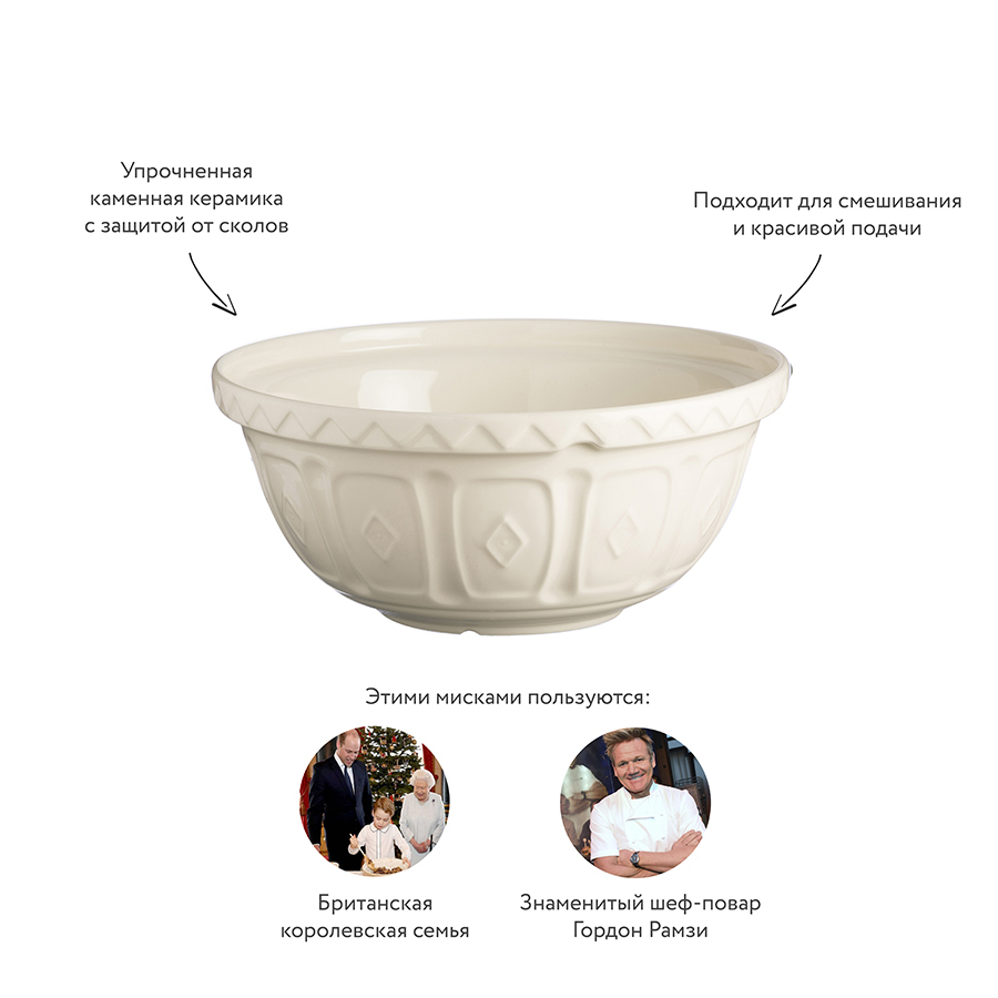 Универсальная миска Colour Mix поможет добавить ярких цветов в современный интерьер вашей кухни. Посуда предназначена для замешивания теста, смешивания ингредиентов, а также подачи овощей и фруктов. Дизайнеры украсили изделие тисненым рисунком в стиле викторианской эпохи. Чаша выполнена из тонкой керамики, которая отличается прочностью и стойкостью к сколам. Изделие подходит для использования в микроволновой печи и для мытья в посудомоечной машине.