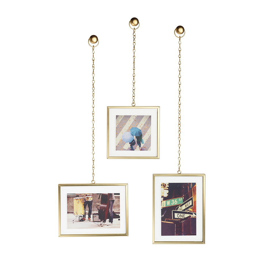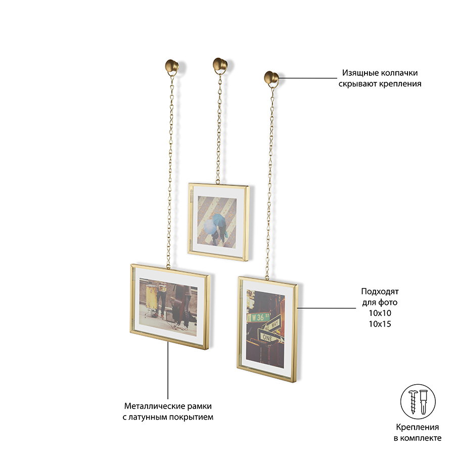 Набор из трех декоративных рамок для фотографий, каждая из которых подвешена на цепочку, превратит любую открытку в произведение искусства.