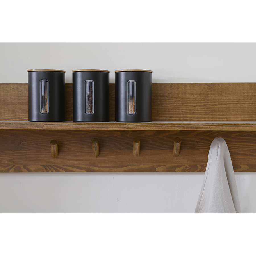 Банки для хранения сыпучих продуктов Kaffi от бренда Smart Solution – простой способ навести порядок на кухне и подчеркнуть модный дизайн интерьера. Емкости выполнены из прочной углеродистой стали с износостойким порошковым покрытием, которое защищает их поверхности от коррозии и повреждений. Крышки из бамбука имеют силиконовый уплотнитель, благодаря чему плотно прилегают, исключая попадание внутрь контейнеров влаги и пыли. Сочетание металла и бамбука смотрится стильно и органично вписывается в различные интерьерные решения – от минимализма и лофта, до прованса и эклектики.