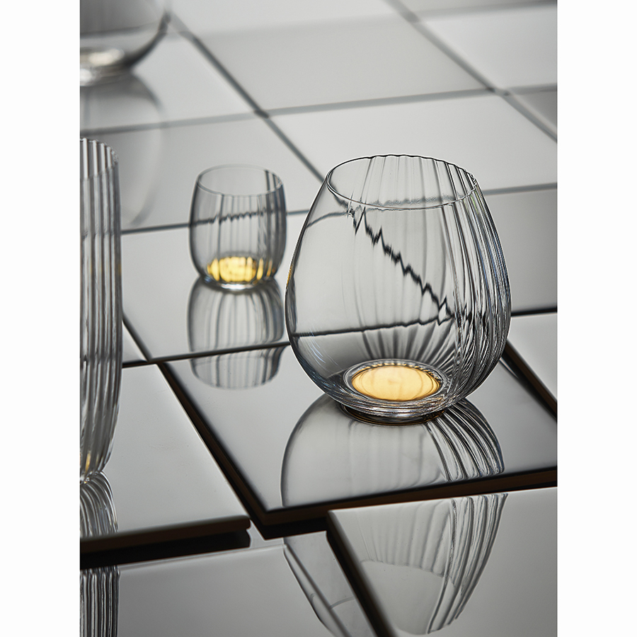 Уникальная дизайнерская коллекция Alice позволит вам окунуться в сказочную атмосферу страны чудес, где реальность превращается в фантазию, а зазеркалье открывает новые грани красоты! Каждый бокал и стакан – это неповторимое произведение искусства из выдувного стекла ручной работы. Главной особенностью линейки является необычное сочетание гладких и рельефных поверхностей, а также золотистые акценты, которые создают волшебные блики и усиливают блеск стеклянных граней.
