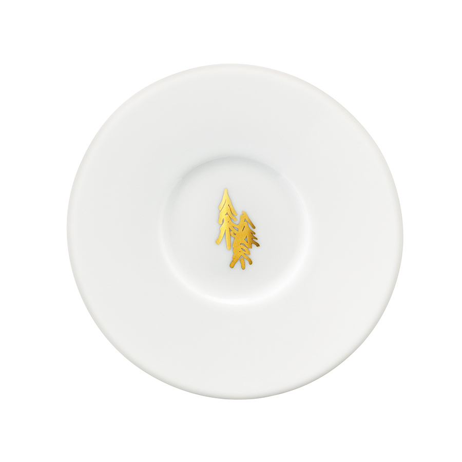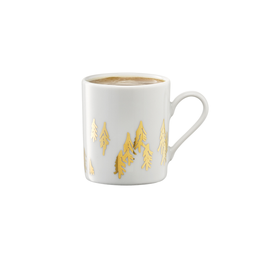 Набор из 2 чашек для кофе с блюдцами Fir Metallic идеально подойдет как для ежедневного использования, так и для торжественных мероприятий. Поверхность изделий украшает иллюстрация золотистых елей. Чашки изготовлены из белоснежного фарфора, прочного и стойкого к высоким температурам. Комбинируйте набор с другими предметами коллекции Utility для создания завершенной композиции. Рекомендуемый уход: ручная мойка, протирать насухо мягкой тканью