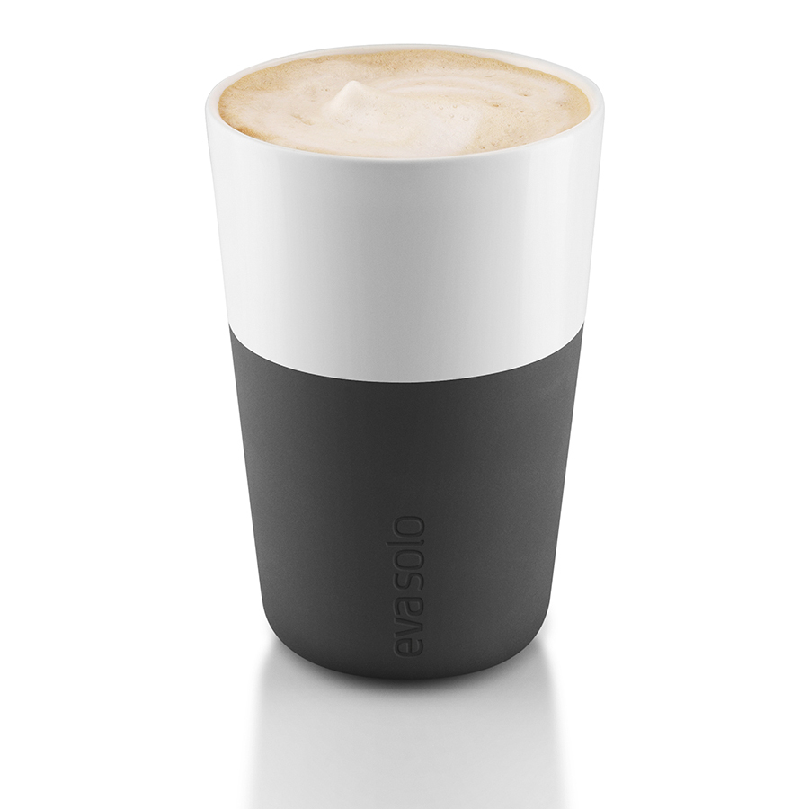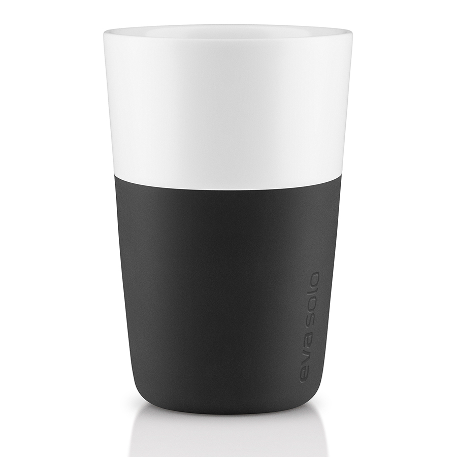 Каждая чашка рассчитана на 360 мл кофе с высокой шапкой молочной пены. Это стандартный объём латте для большинства кофемашин. Для удобства использования предусмотрены термоустойчивые силиконовые накладки, благодаря чему чашку можно держать в руках, не боясь обжечься. Чашки выполнены из высокопрочного фарфора, устойчивого к высоким температурам. Силиконовые накладки легко снимаются.